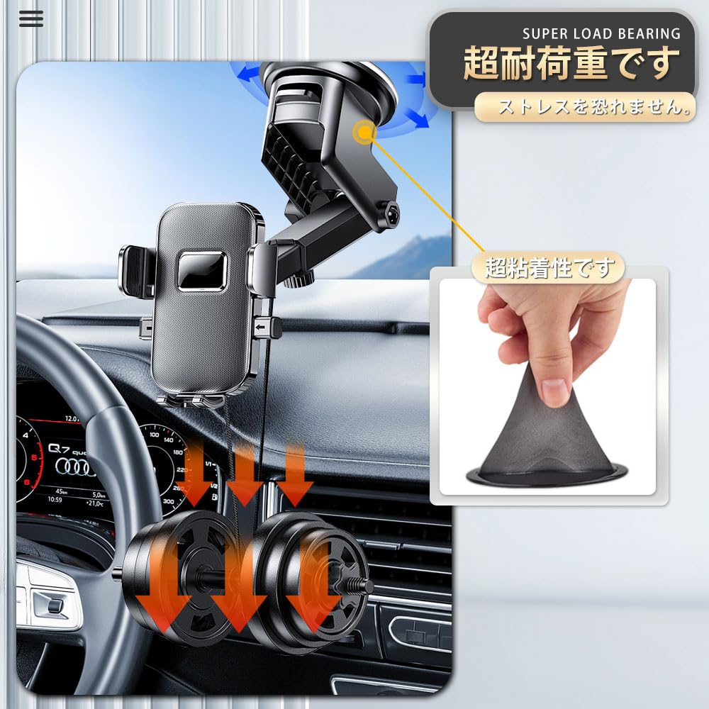 高品質素材】高品質なABS樹脂素材を使用し、強度と耐久性に優れ、非常に強力な粘着力で吸盤ブラケットをダッシュボードにしっかりと固定することができます。