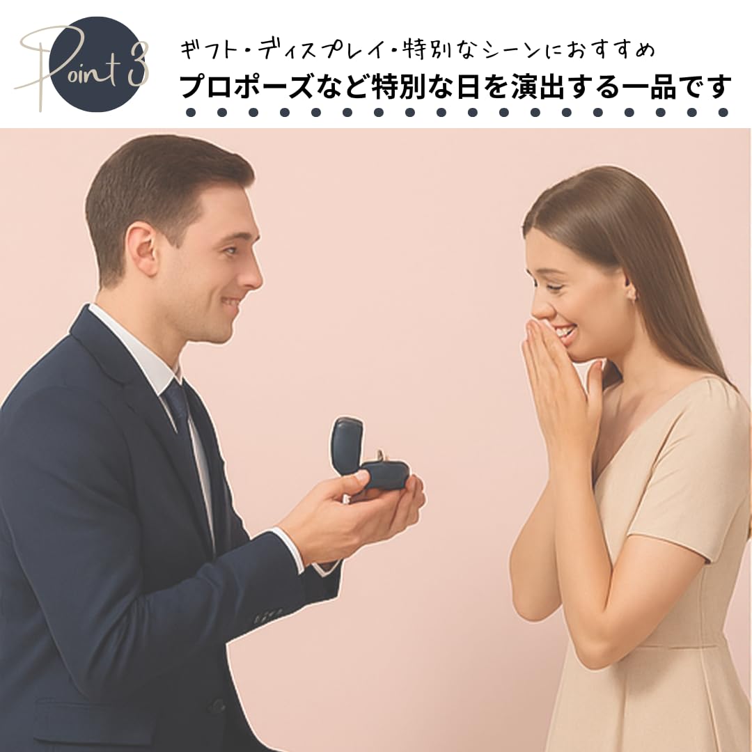【特別なシーンに最適】プロポーズや結婚式、記念日など、人生の大切な瞬間にふさわしいリングケースです。ギフト用にも、ディスプレイ用にも使えます。