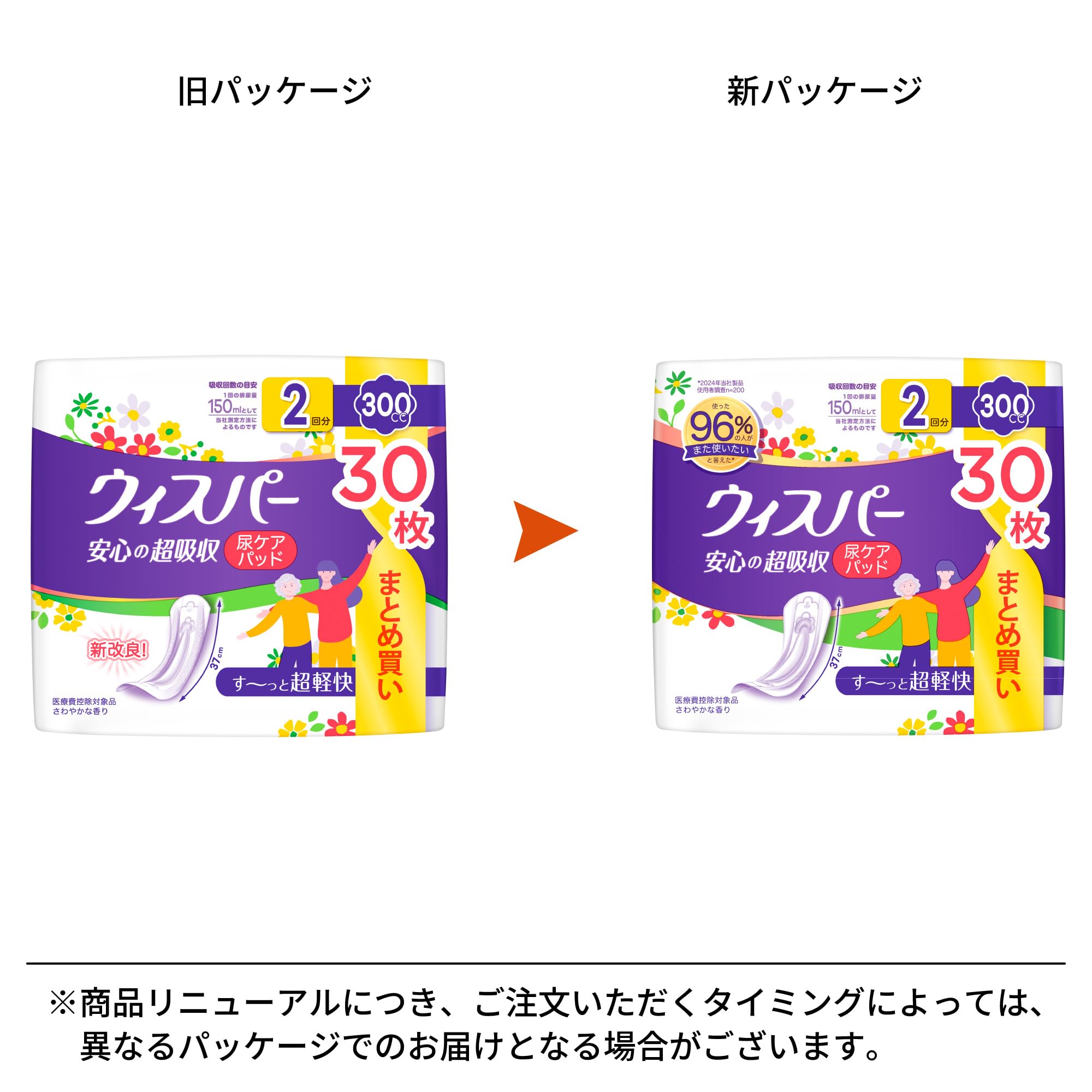 [大容量]ウィスパー 安心の超吸収 300cc 30枚 (尿漏れパッド 尿とりパッド 女性用) 【ご家族の方にも】