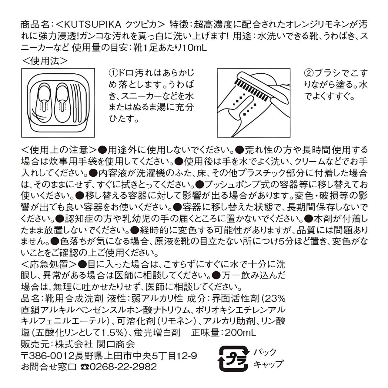 株式会社関口商会 クツピカ 上履き洗剤 ジェルタイプ 上靴 スニーカー 詰め替え 200ml