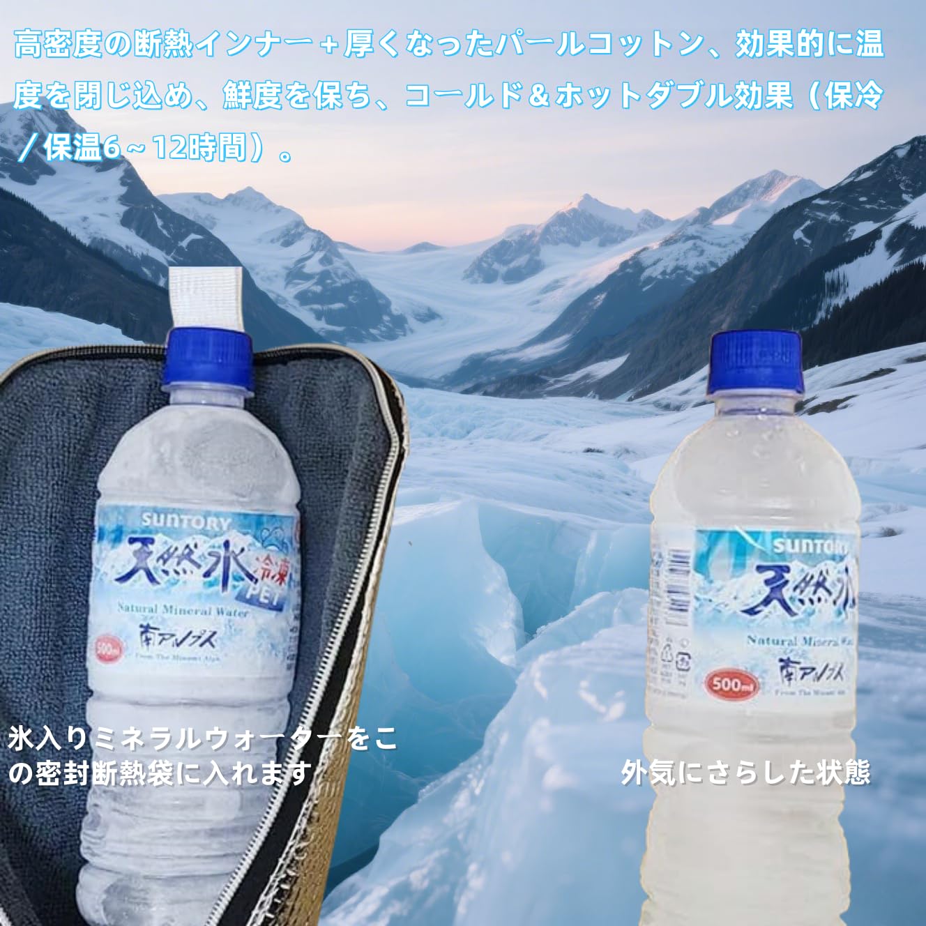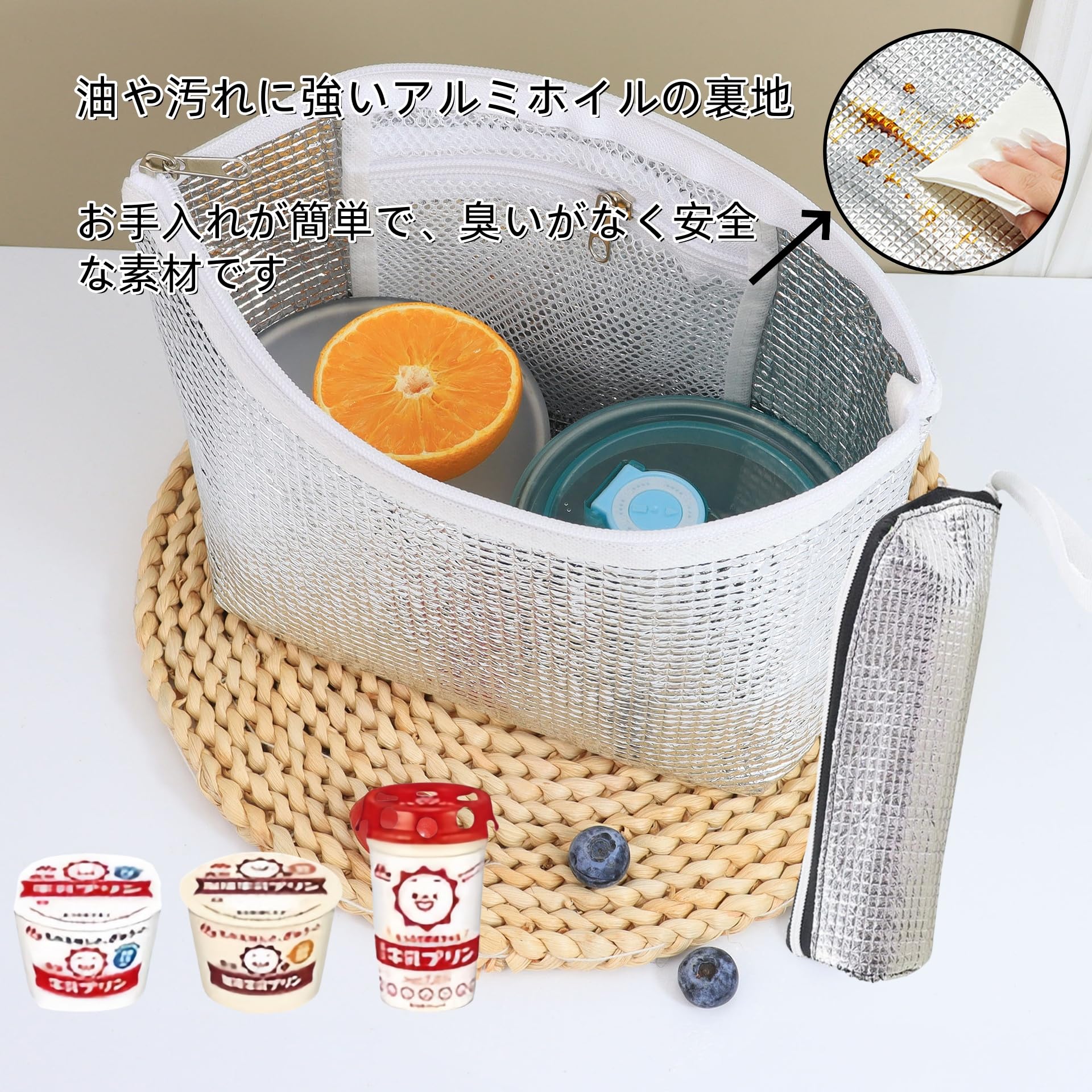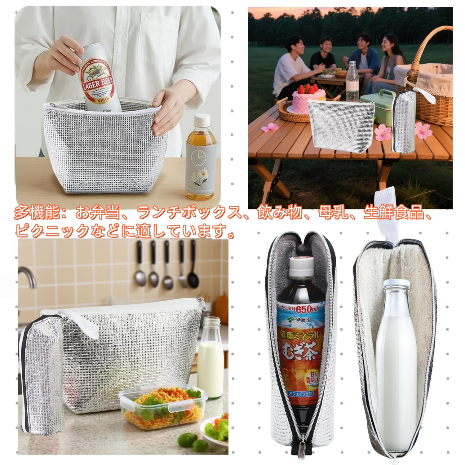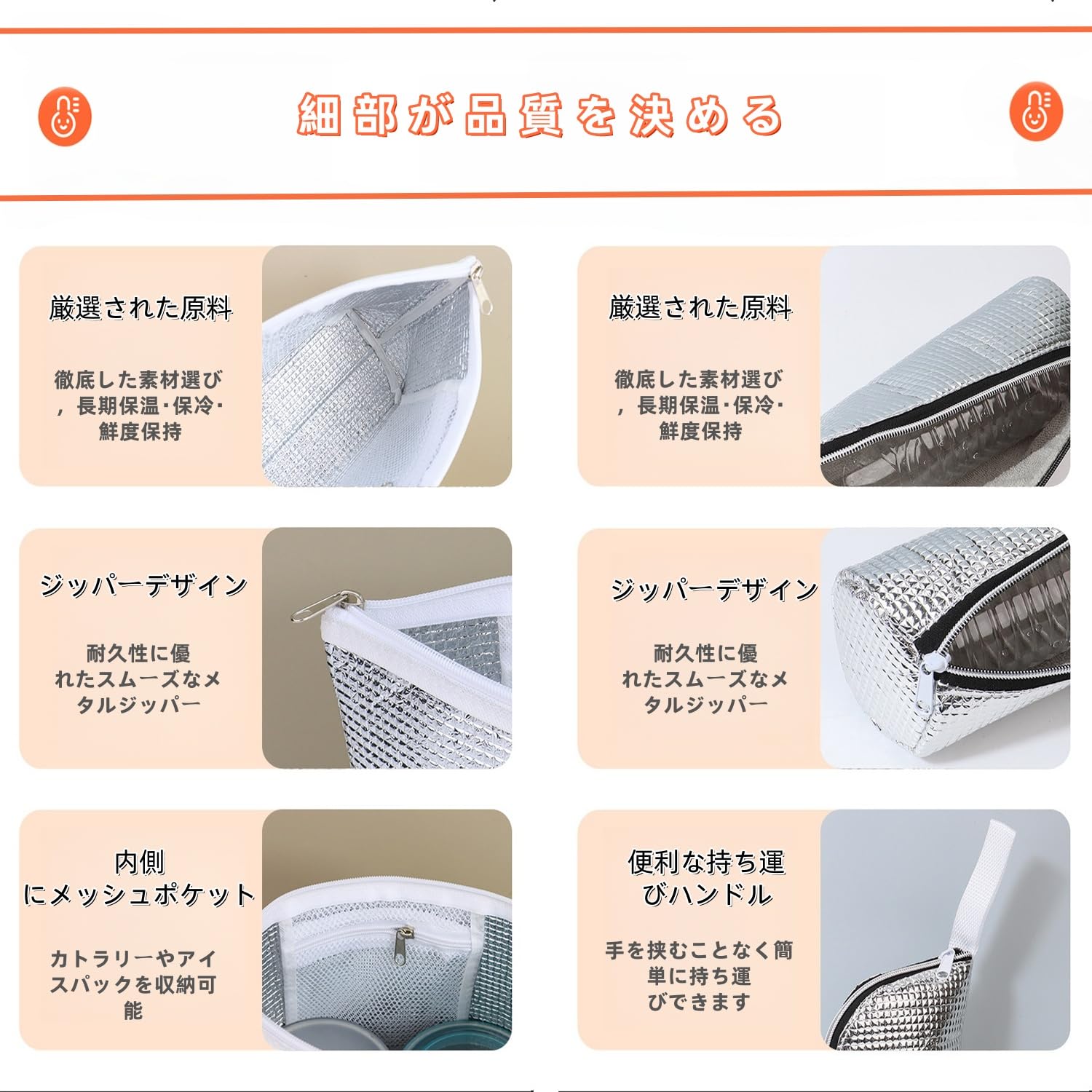 セット内容:保冷バッグ(29*19*5cm)×1+保冷カップバッグ(28*4*5cm)×1。バッグ素材:外側両面アルミホイル、内側EPEパールコットン。