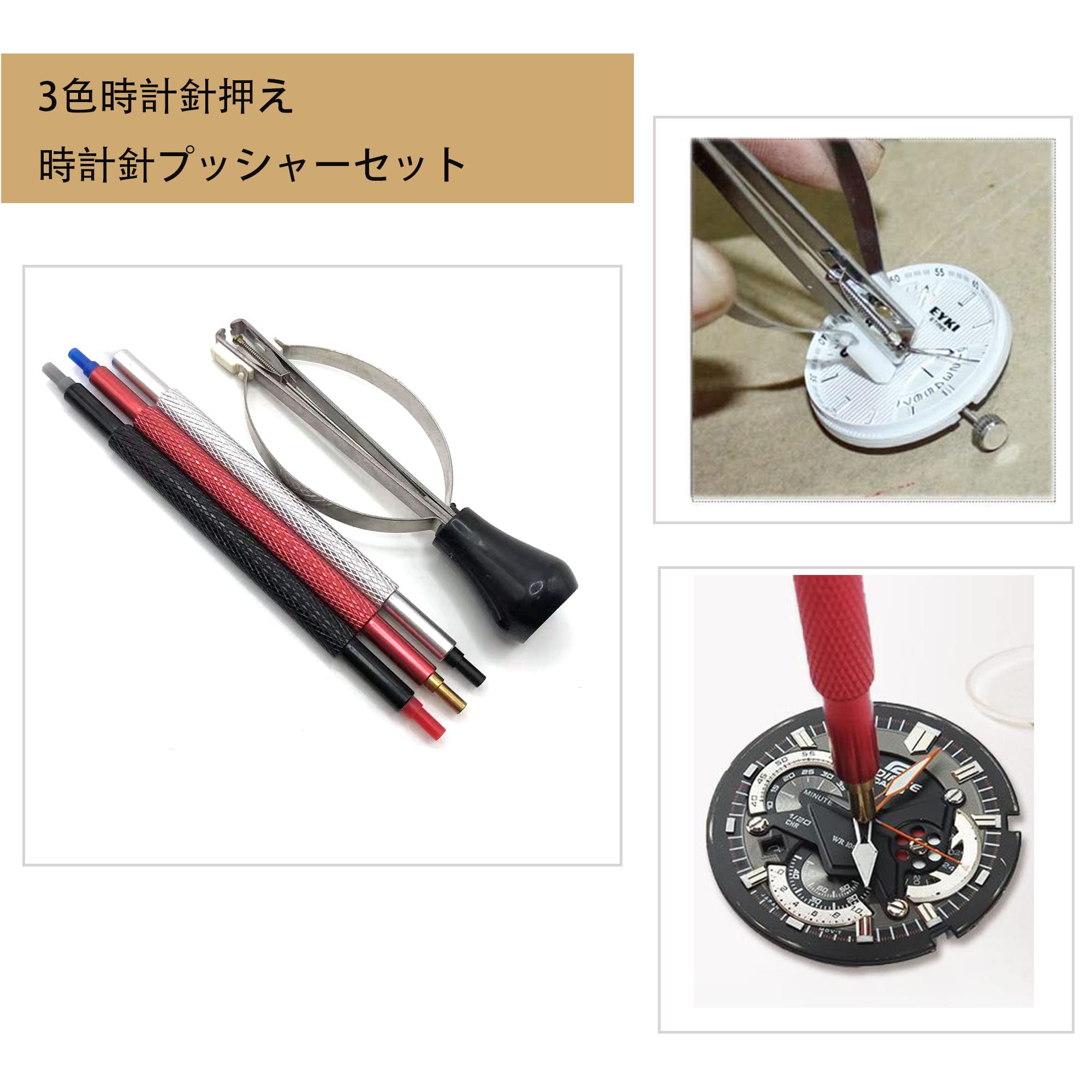 【3色時計針押え剣押さえ 剣抜き セット】時計工具 含む3つの手動圧力装置時計の針を調整するための6つの異なる穴があります 文字盤を傷つけることなく、腕時計修理工具セット 簡単な操作で針を調整することができ、あなたの腕時計のための個性的な針や特殊な針をDIYすることができます