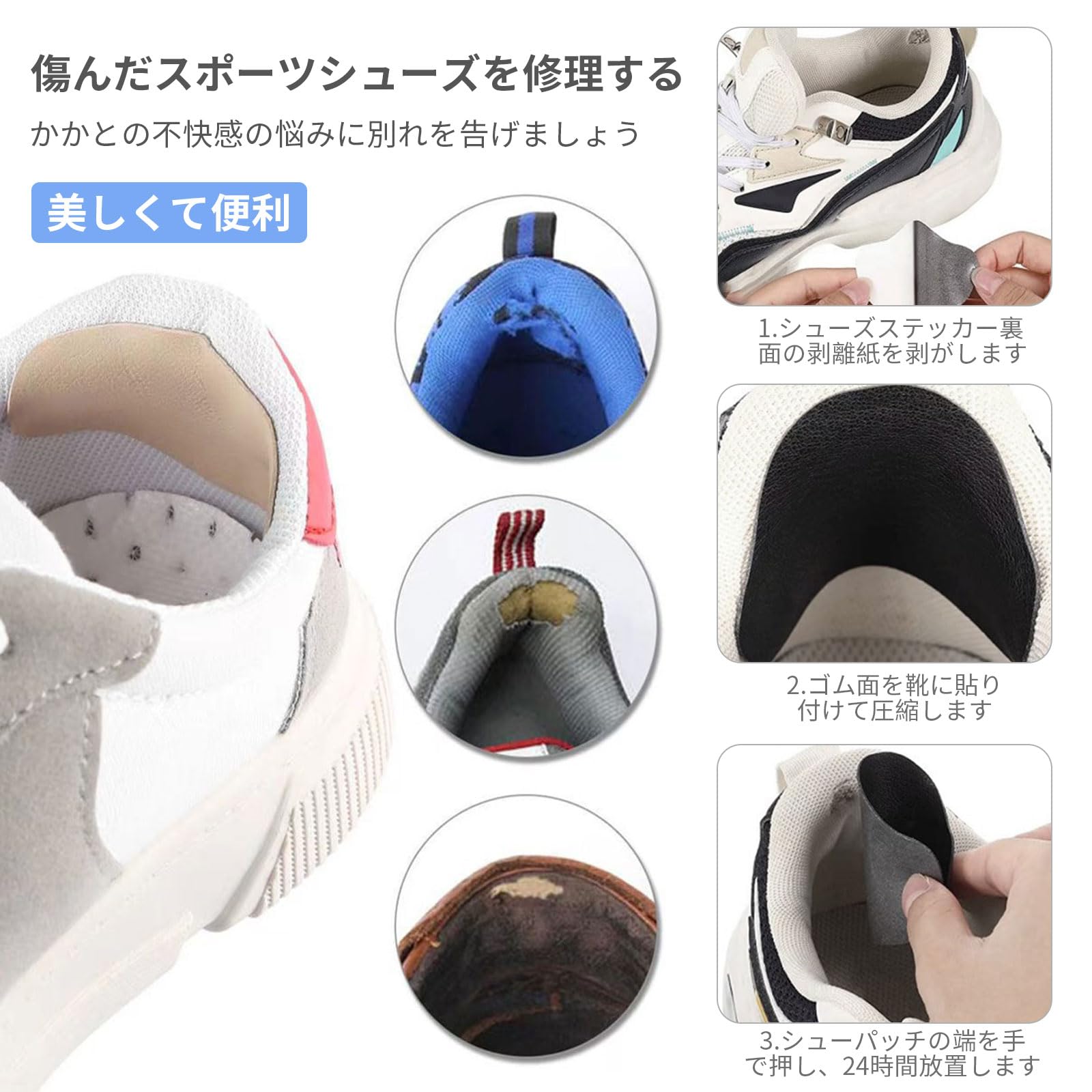 [ポクミル] 靴かかと補修 内側 24枚セット スニーカー 内側かかと補修 靴修理パッチ スニーカー かかとすり減り防止 靴 破れ 補修 シューズ補修材 パッチ かかと内側補修 かかと破れ補修 内側かかと補強 靴の穴防止 靴修理用品