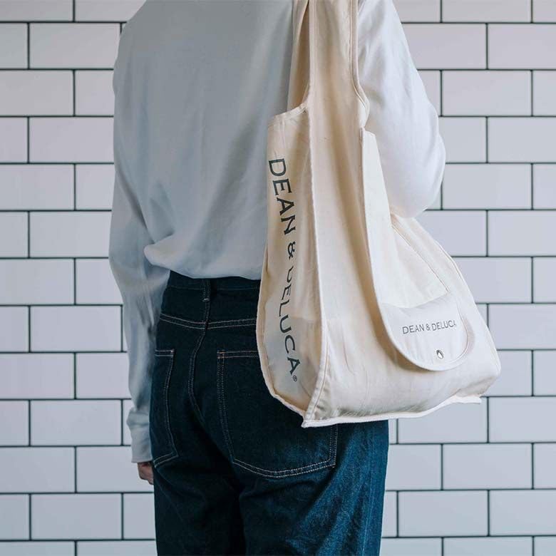 [ディーンアンドデルーカ] ショッピングバック ナチュラル エコバッグ 折りたたみ 軽量 コンパクト レジ袋 マイバッグ 43×37×14㎝
