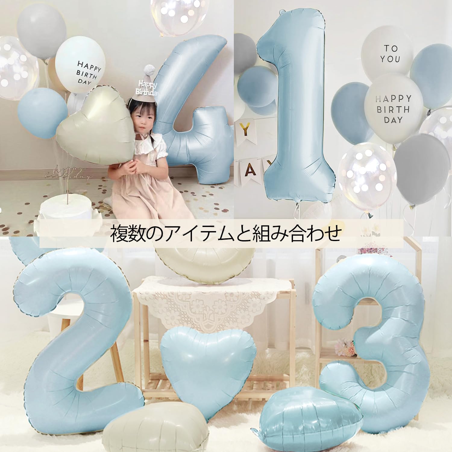 【豊富な23点セット】①くすみブルーナンバーバルーンx1(高さ90-100cm) ②ハートアルミバルーンx2「くすみブルー、くすみホワイト」 ③星アルミバルーンx2「くすみブルー、くすみホワイト」④グレー風船x3(2+予備1)⑤マカロンブルー風船x3(2+予備1)⑥クリアドット風船x3(2+予備1)⑦HAPPY BIRTHDAY白風船×2(大きさ約25cm) ⑧TO YOU白風船×2(大きさ約25cm) ⑨リボンx1「おまけ」⑩ドットシールx4枚「おまけ」※風船はペタンコの状態でお届けです。
