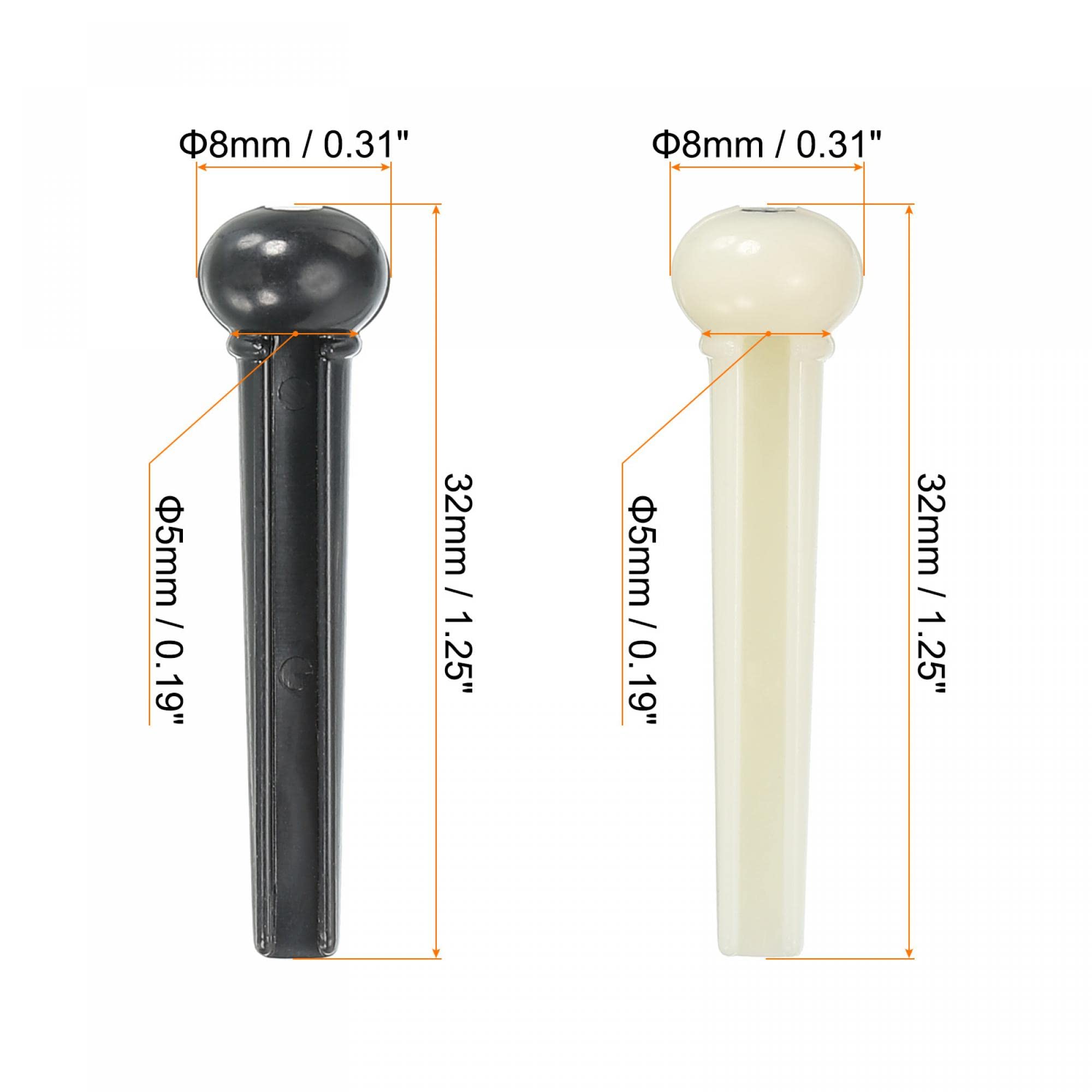 長さ x ヘッド径 : 32x8mm;バックル取付径: 5mm;素材: プラスチック;カラー: ベージュ、ブラック;パッケージ内容: 36 x ギターブリッジピン(各色18個入り)、1 x ブリッジピンプラー