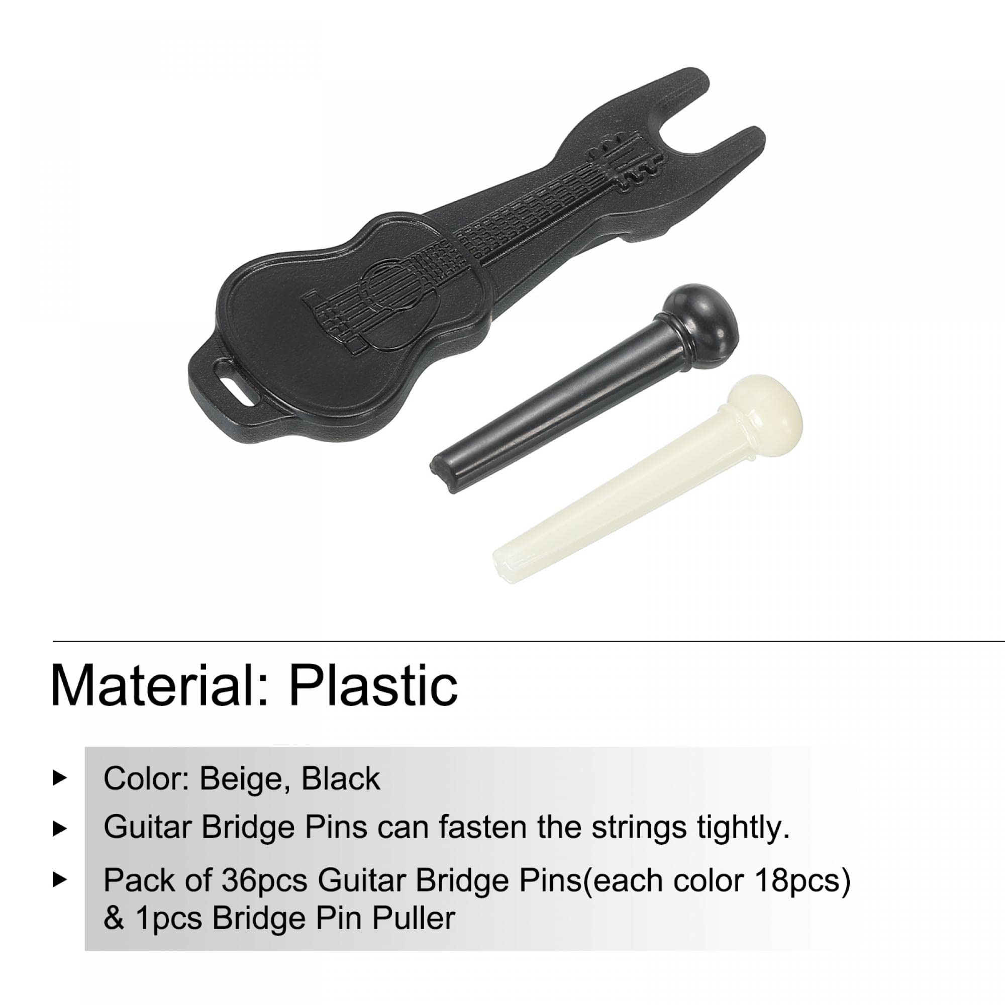 uxcell アコースティックギター ブリッジピンペグ プラスチック ギター弦ピンの交換品 ベージュ ブラックアコースティックギター用 ブリッジピンプラー付き 36本入り