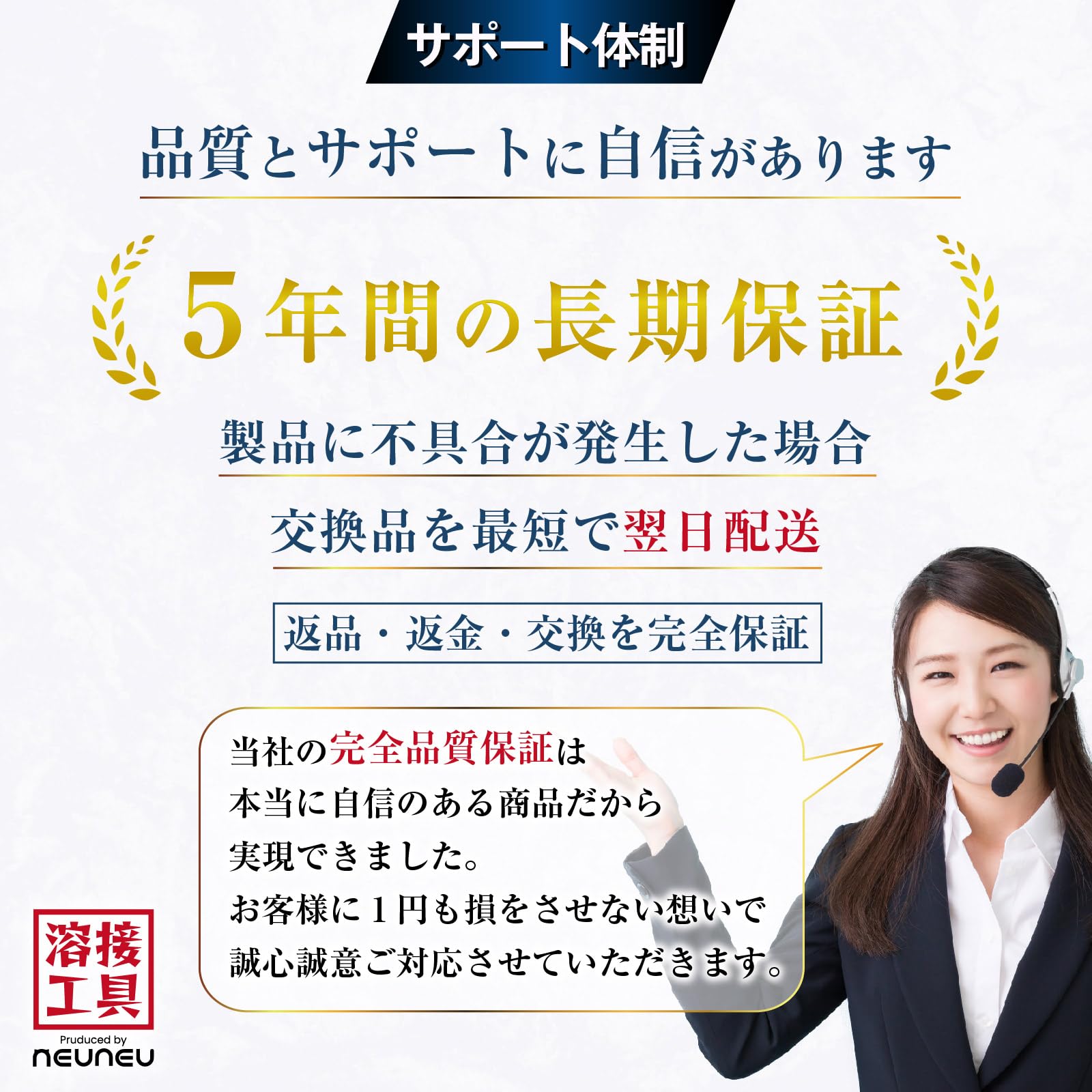 【 安心の5年間長期・日本人サポート 】 日本人スタッフによる万全のサポート体制を整え、万が一の不具合にも迅速に対応いたしますので、安心してお買い求めください。