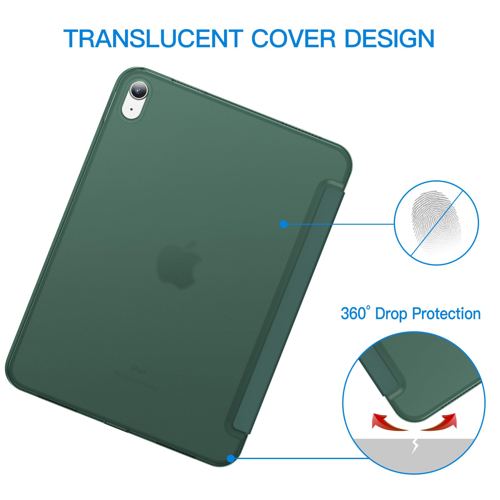 マグネット内蔵、オートスリープとオートウェイクアップ機能が付きます。三つ折りフロントカバーにより、視聴とタイピングに合わせた2つスタンド角度を調整できます