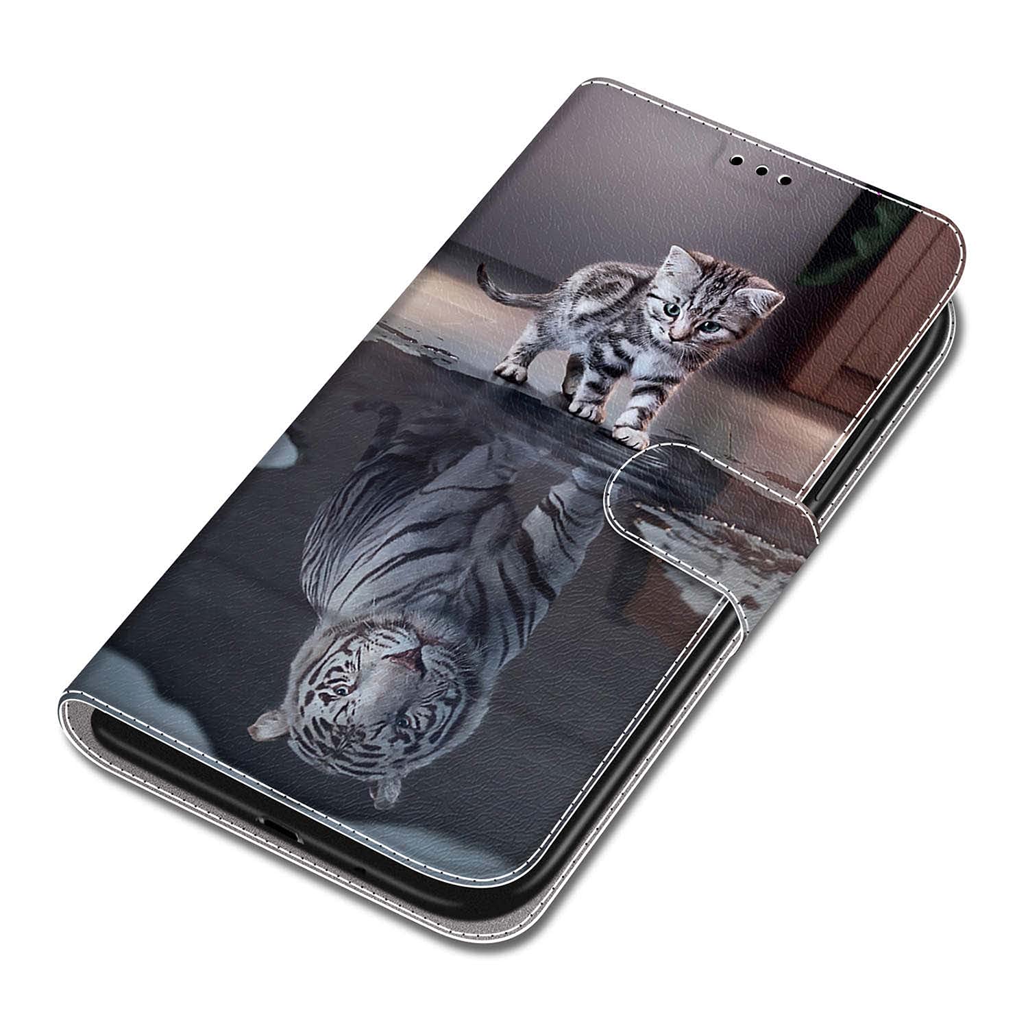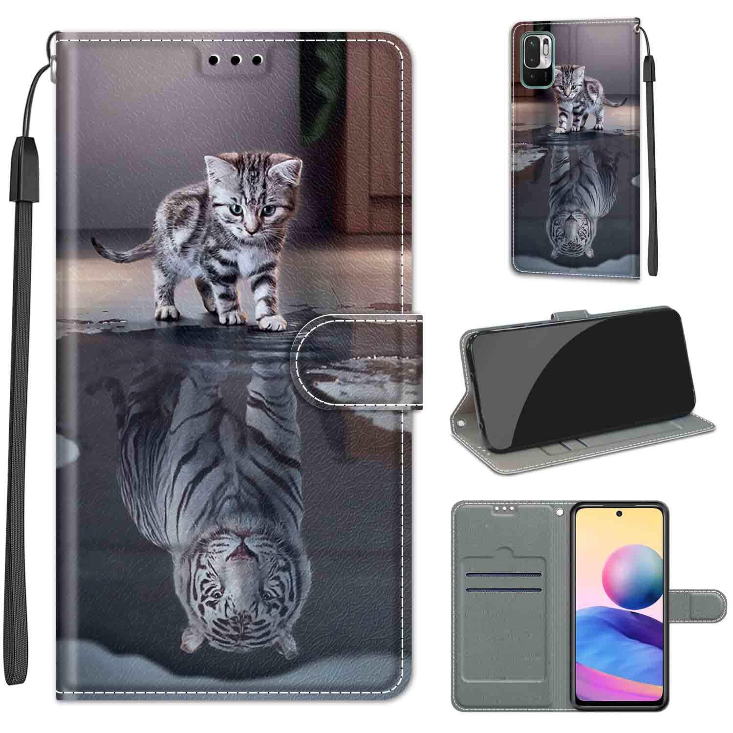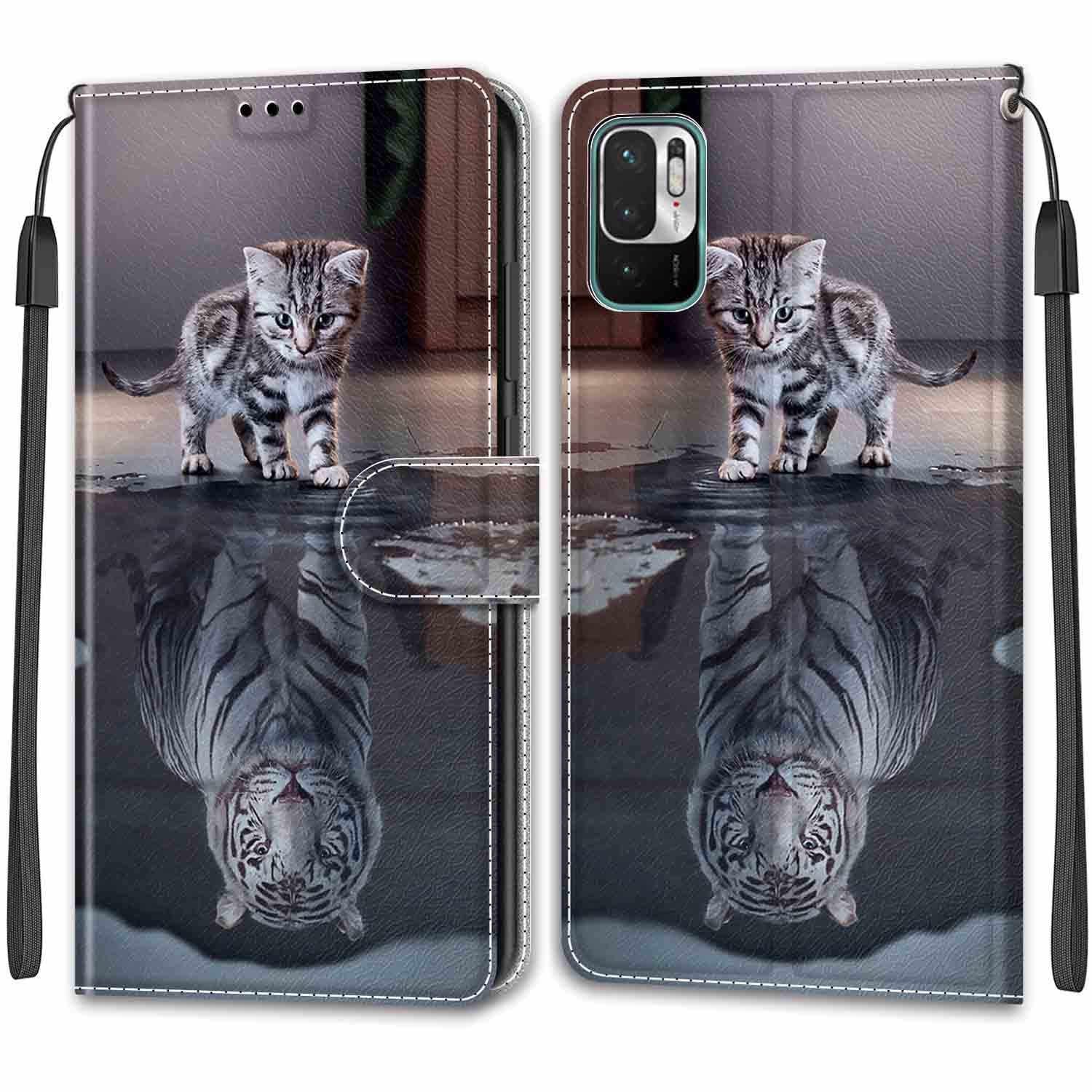 KENHONER Xiaomi Redmi Note 10 JE ケース 手帳型 対応 Redmi Note 10T ケース かわいい柄 Redmi Note 10 JE au XIG02 ケース スタンド機能 マグネット式 Xiaomi Redmi Note 10 JE/Redmi Note 10T スマホケース 携帯カバー 財布型 (猫と虎)