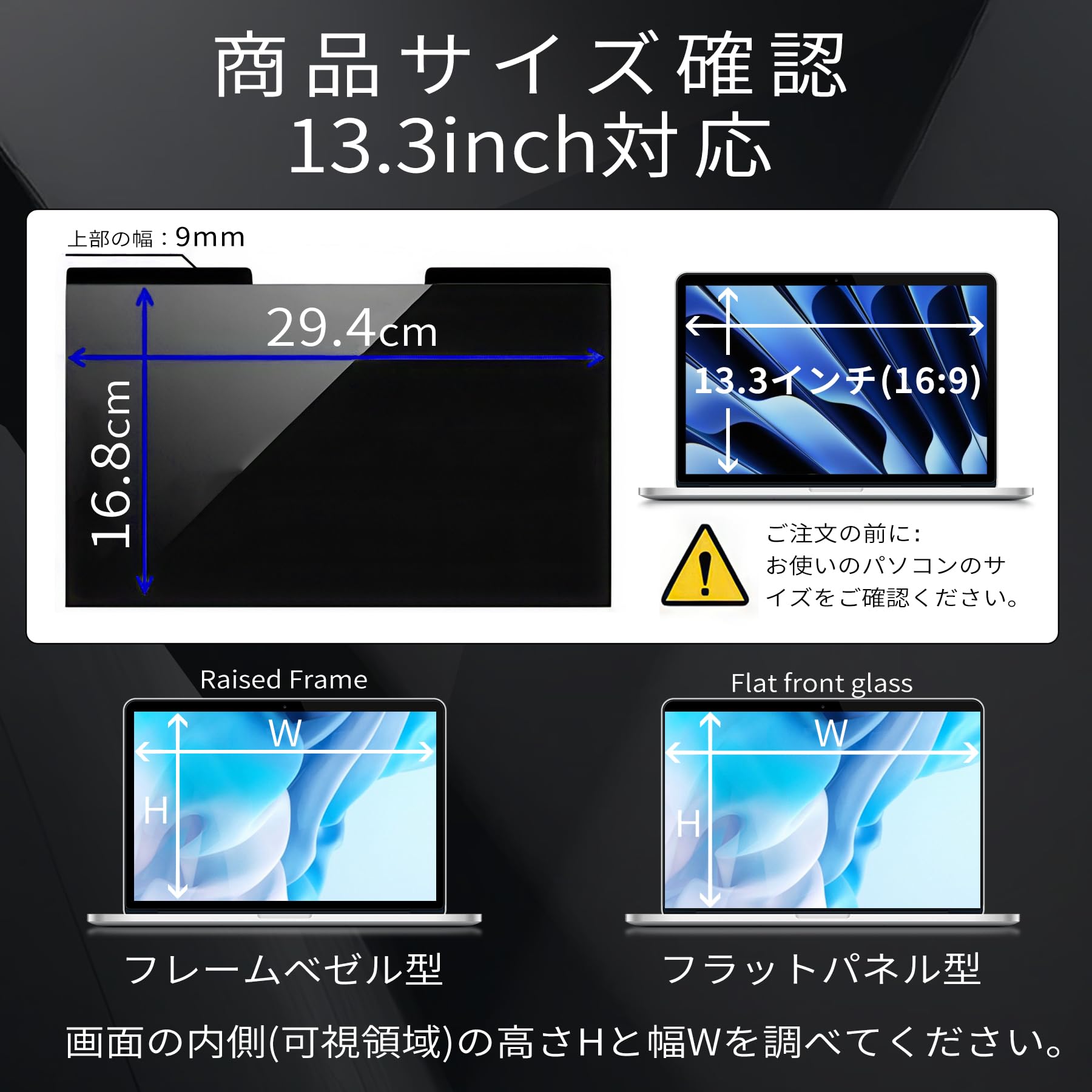 【対応デバイス】画面の表示可能画像領域が以下のパラメータを満たすノートパソコンにのみ適しています。ご注文の前に、ノートパソコン画面の表示可能画像領域の値を測定して確認してください。幅:294mm、高さ:168mm、対角線:13.3インチ(337.8mm)。HP、Lenovo、Dell、Acer、Asus、Samsung、Envy、Toshiba、その他の13.3インチ16:9アスペクト比のノートパソコンブランドと互換性があります。