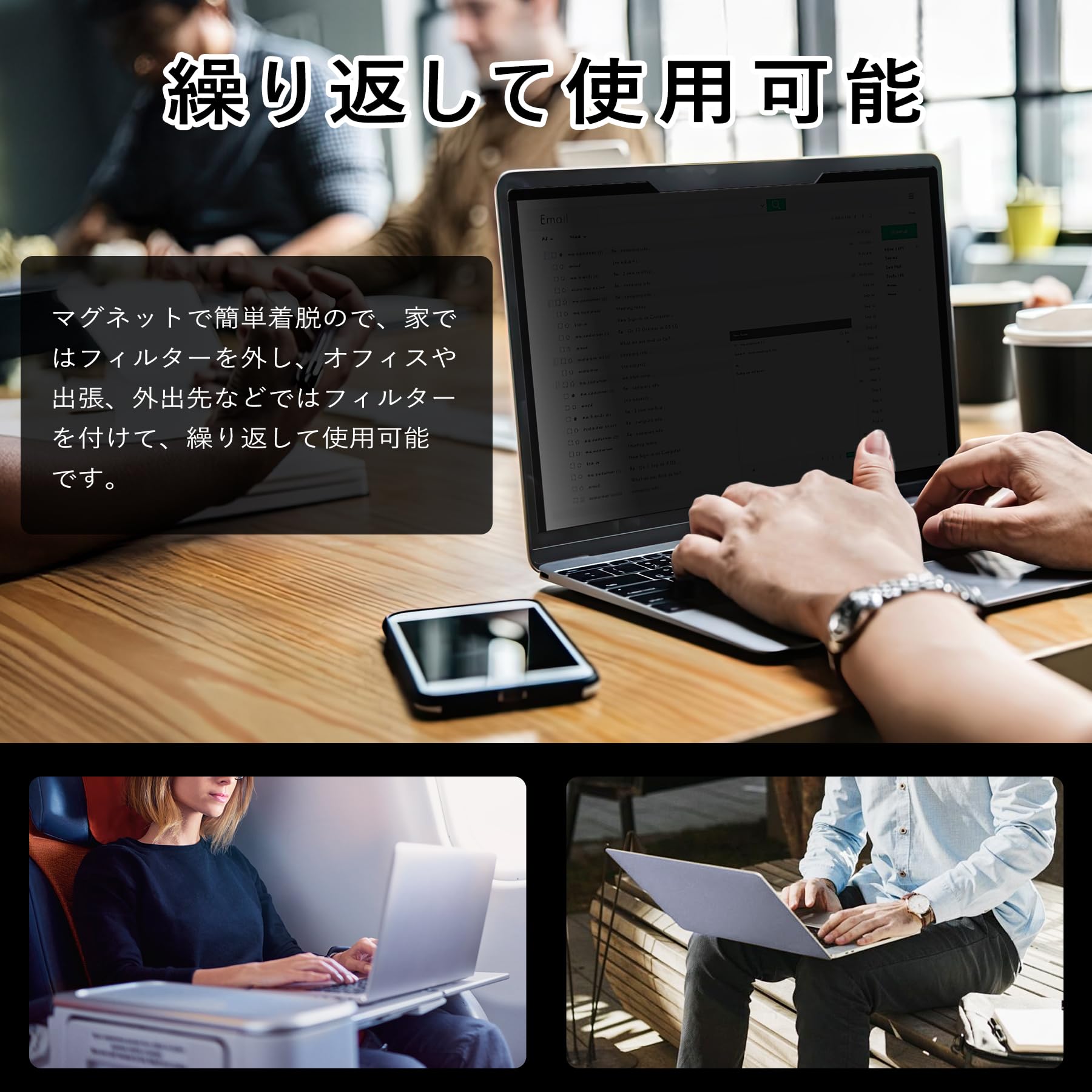 【驚異的なプライバシー保護】ノートパソコンのプライバシースクリーンの角度を5000回以上修正し、ノートパソコンの左右30°外の視界をフィルタリングできるため、パソコンのデータが覗き見されたり、公共の場でデータが公開されたりしないことをできます。 ご注意:13.3インチのスクリーンプロテクターは、左右からの視界を防ぎますが、どんなに離れていても正面からの視界は防ぎません。