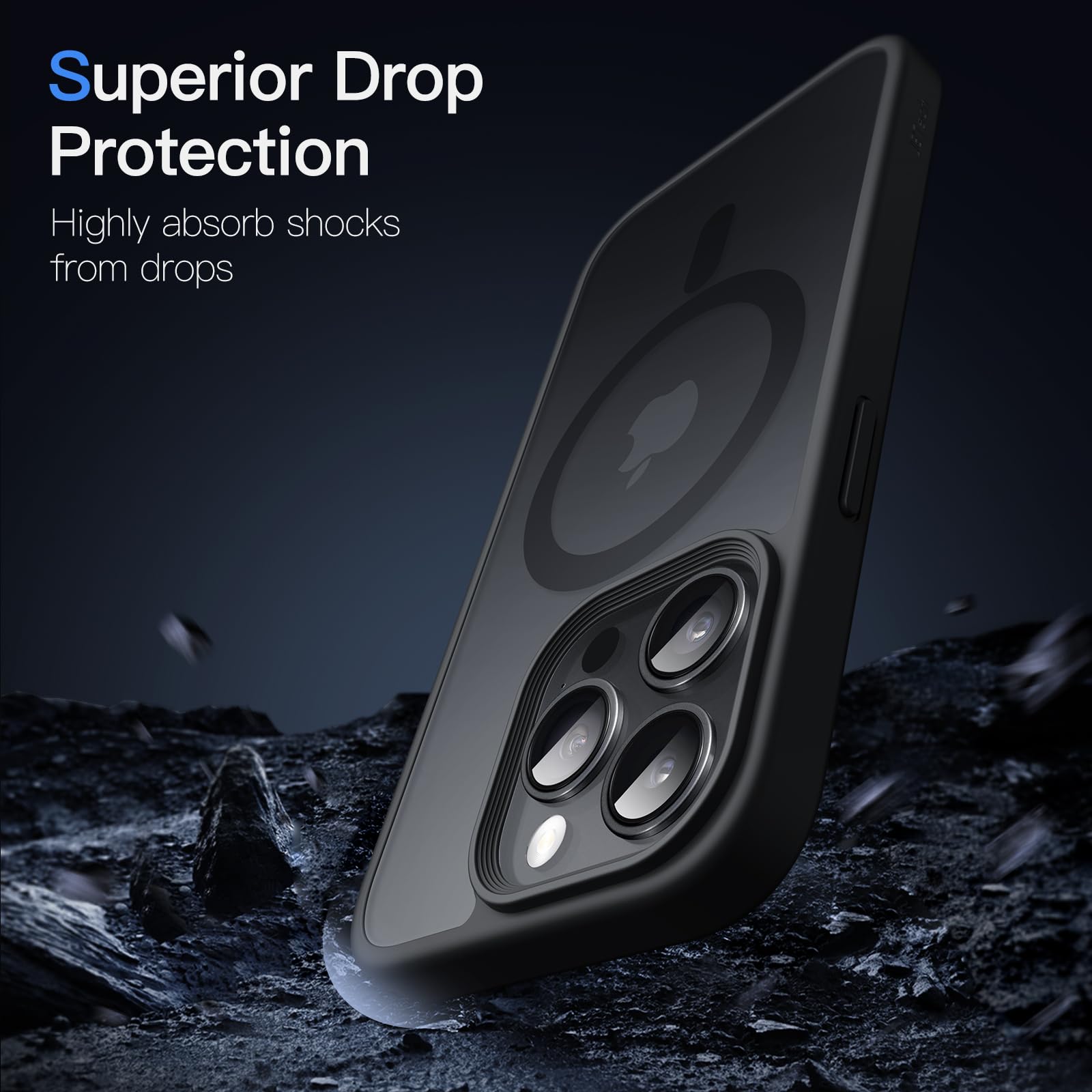 【在庫処分】JETech iPhone15ProMax 6.7インチ(15 Pro Max)用 マグネット ケース MagSafeに対応 半透明のマット背面 薄型 耐衝撃 カバー (ブラック)