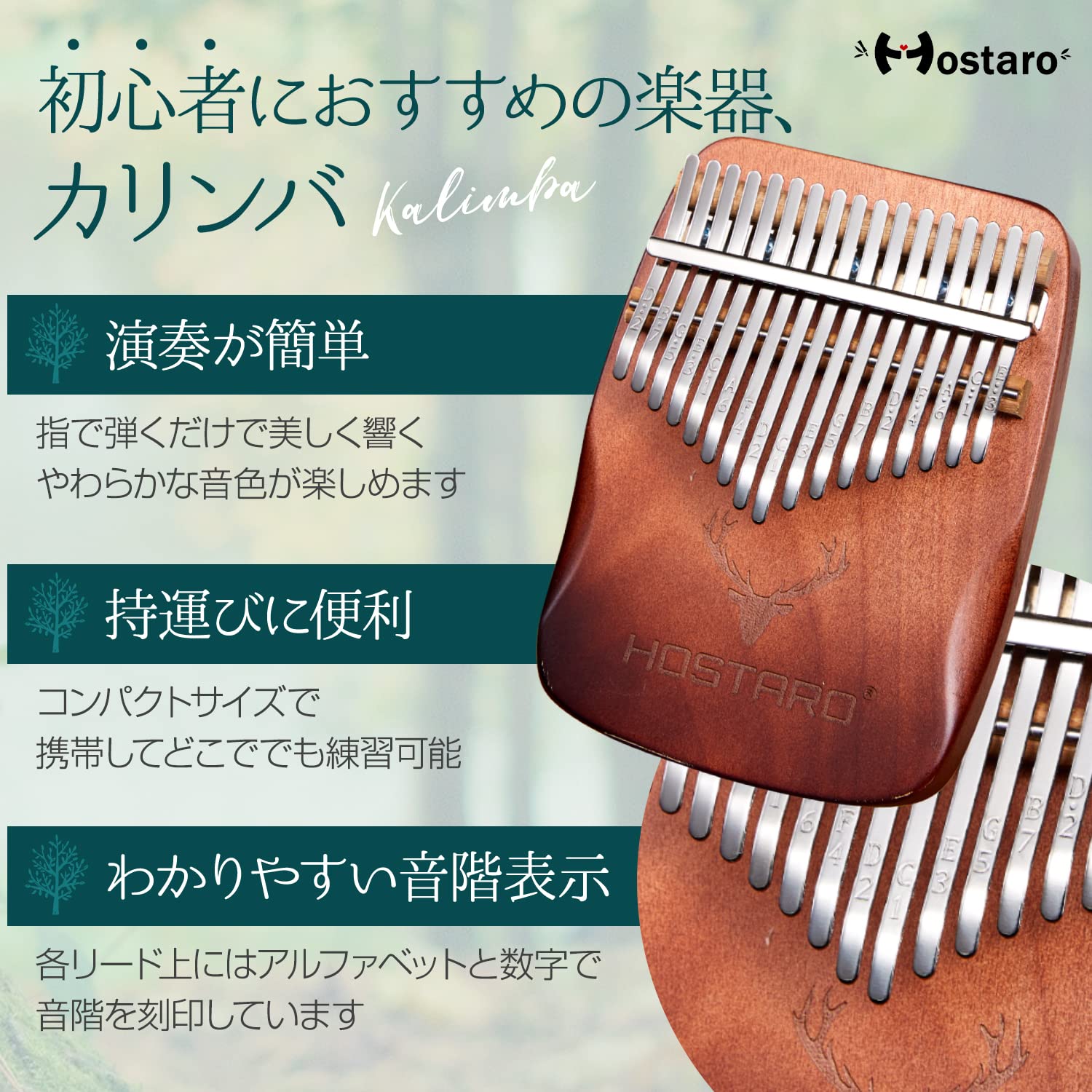 【初心者に薦めたい楽器です】《演奏が簡単》指で弾くだけで美しく響くやわらかな音色が楽しめます。《持運びが簡単》コンパクトなサイズなので携帯してどこででも練習可能。《わかりやすい音階表示》各リード上にはアルファベットと数字で音階を刻印しています。