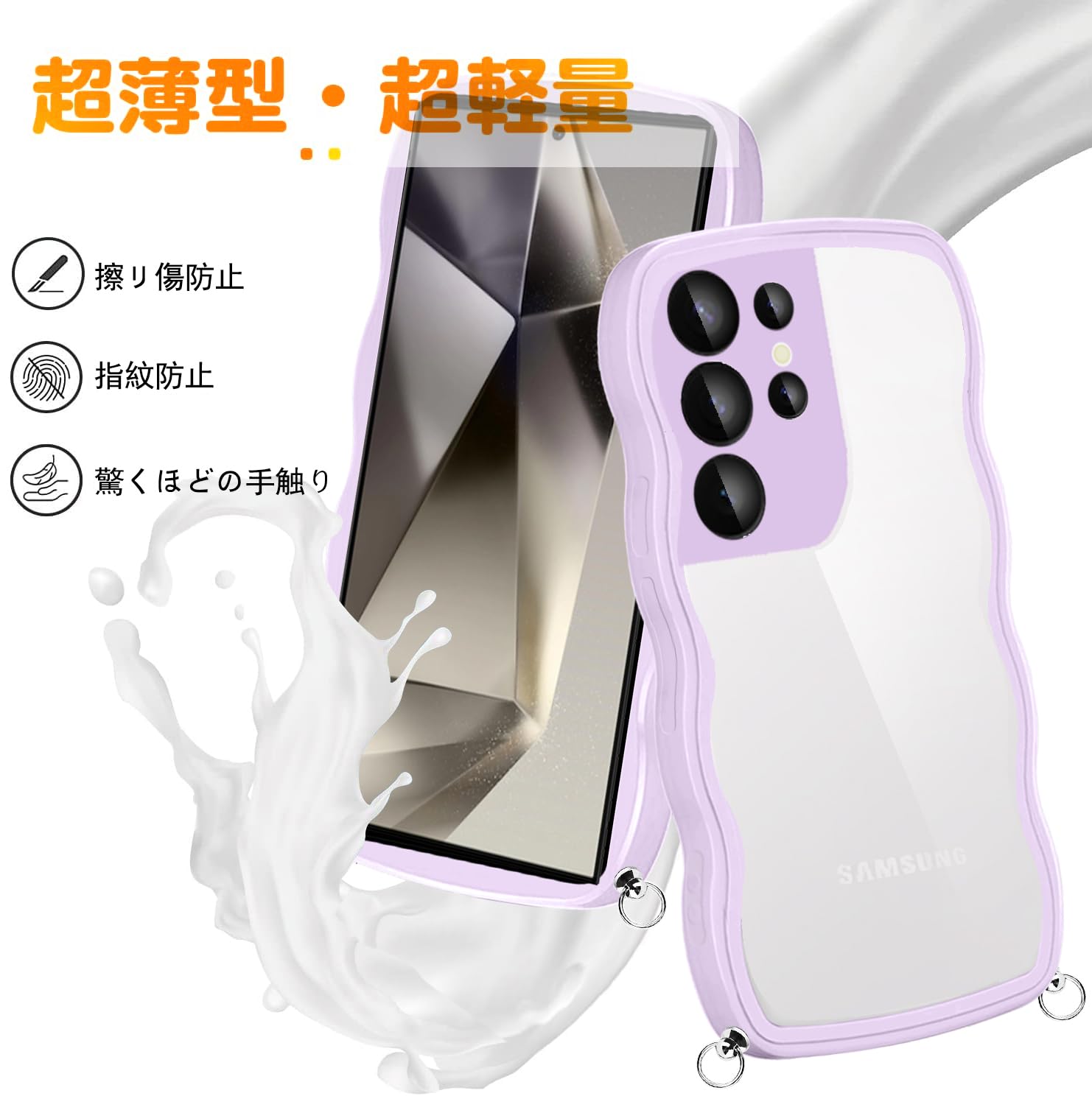 Galaxy S24 Ultra ケース クリア ショルダー 全面保護 SC-52E / SCG26 カバー ストラップ付き 人気 かわいい 透明 ギャラクシー S24 ウルトラ スマホケース 首かけ 肩掛け TPU 薄型 軽量 取り外し/長さ調整可能 ワイヤレス充電対応(パープル)