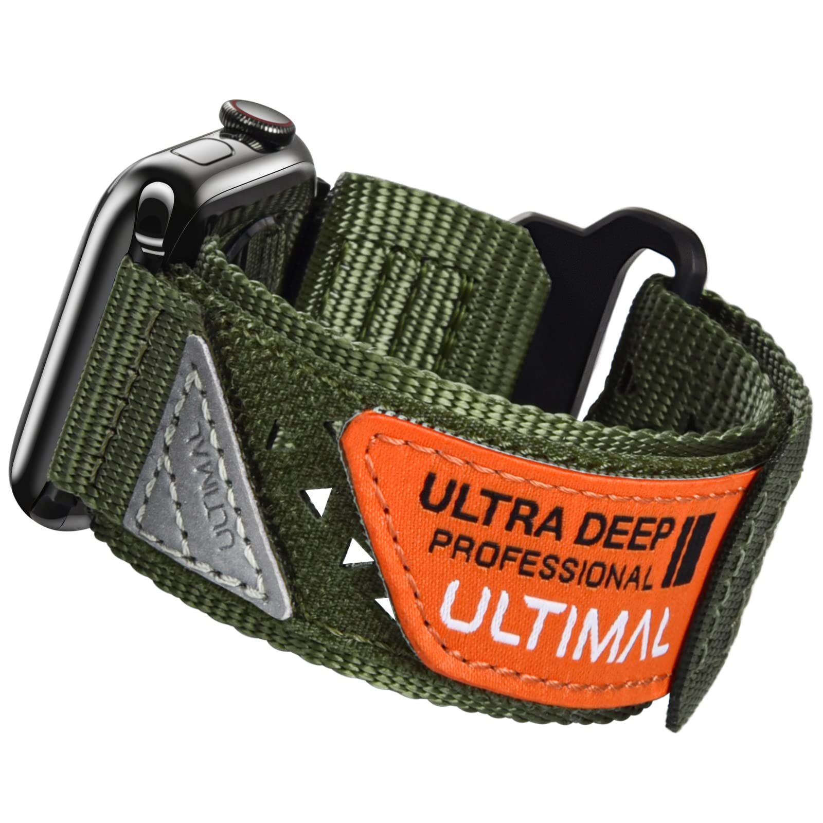 【数量限定】ULTIMAL コンパチブル Apple Watch バンド アップルウォッチバンド 44/45/46mm ナイロン 中空 通気性 交換ストラップ スポーツバンド マジックテープ メンズ レディース iWatch 9/8/7/6/5/4/3/2/1/SE/SE2対応 (透かし彫り-44/45/46mm-L(手首周り17-22.6cm対応) アーミーグリーン)