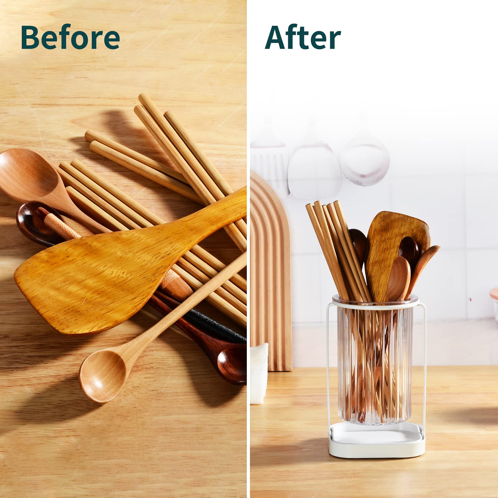 【大容量】大容量の収納が可能な容器で、お箸だけでなくスプーンやフォーク、おたまやしゃもじなどのキッチン道具も収納可能です。また、プラスチックPET製の箸置きは軽くなり、お手入れも楽になりました。
