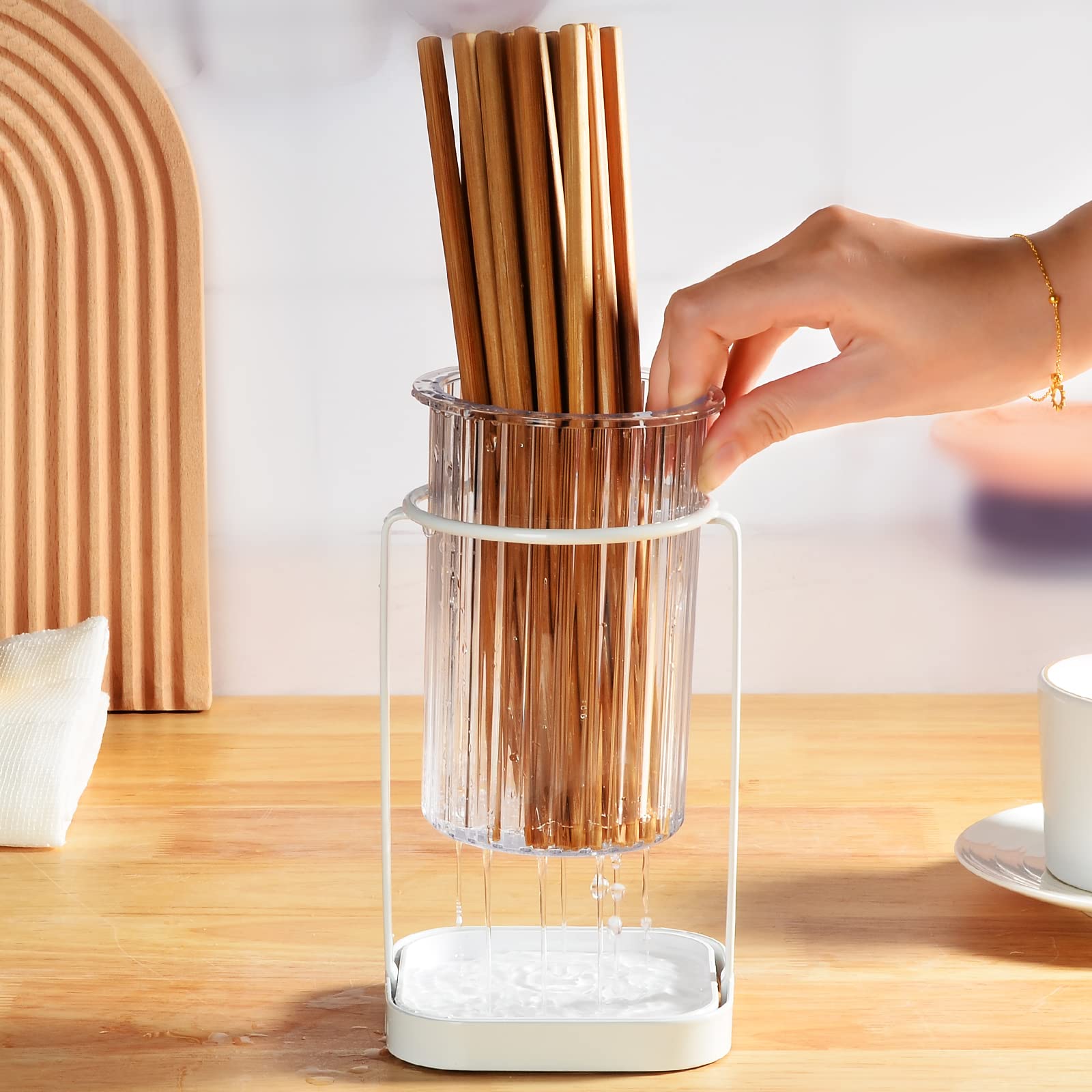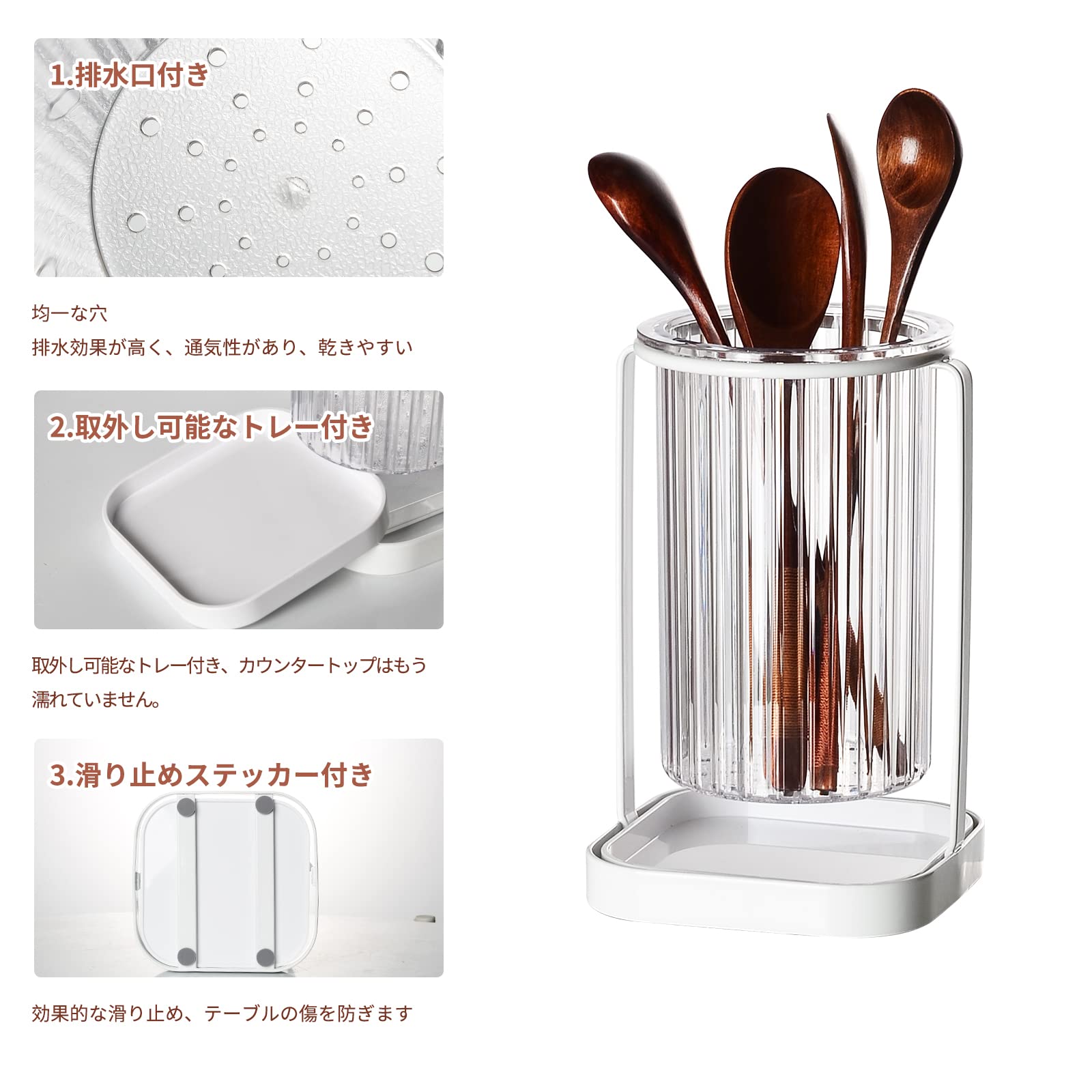 Umlaca 箸立て おしゃれ 箸水切り 箸 フォーク 水切り キッチン箸立て ツール立て キッチン カトラリー スタンド プラスチック製 キッチン用品 (箸立て-シングル)