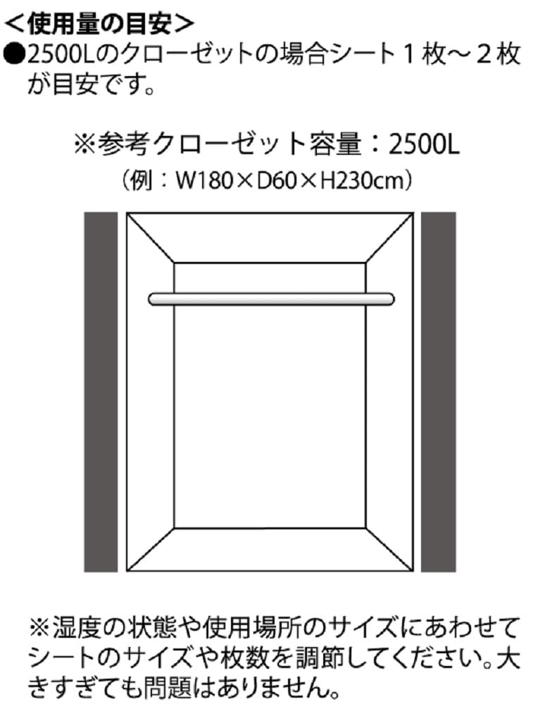 使用目安:2500Lのクローゼットに対してシート1〜2枚