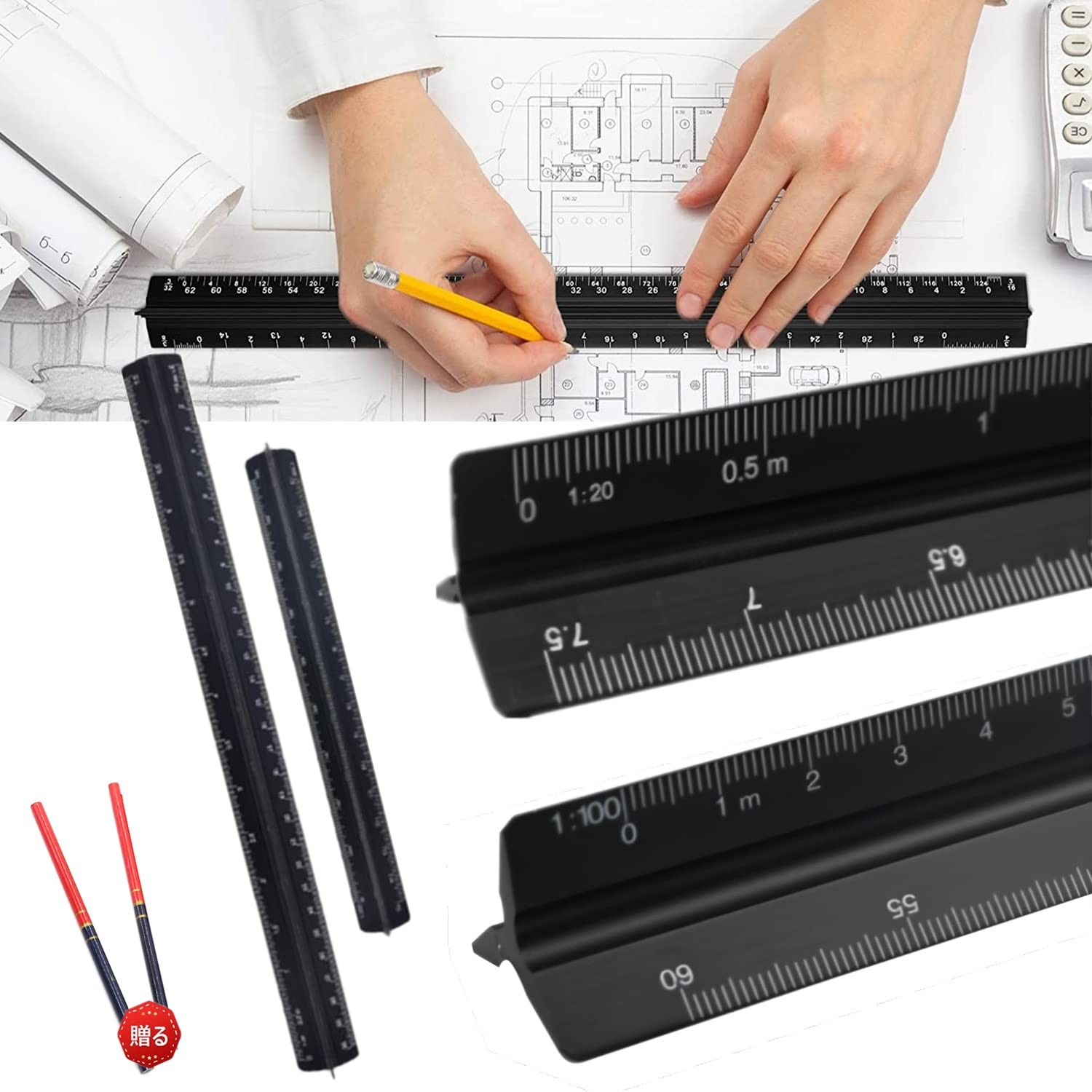 三角スケール 建築 縮尺定規 製図スケール 2本セット アルミ製 高精度 目盛り読みやすい 製図用品の必需品 建築士用 土地家屋調査士用 縮小コピー用 12種類の縮尺目盛 1:20/1:25/1:50/1:75/1:100/1:125 と1:100/1:200/1:250/1:300/1:400/1:500 (15CM(小規模*1+大規模*1))