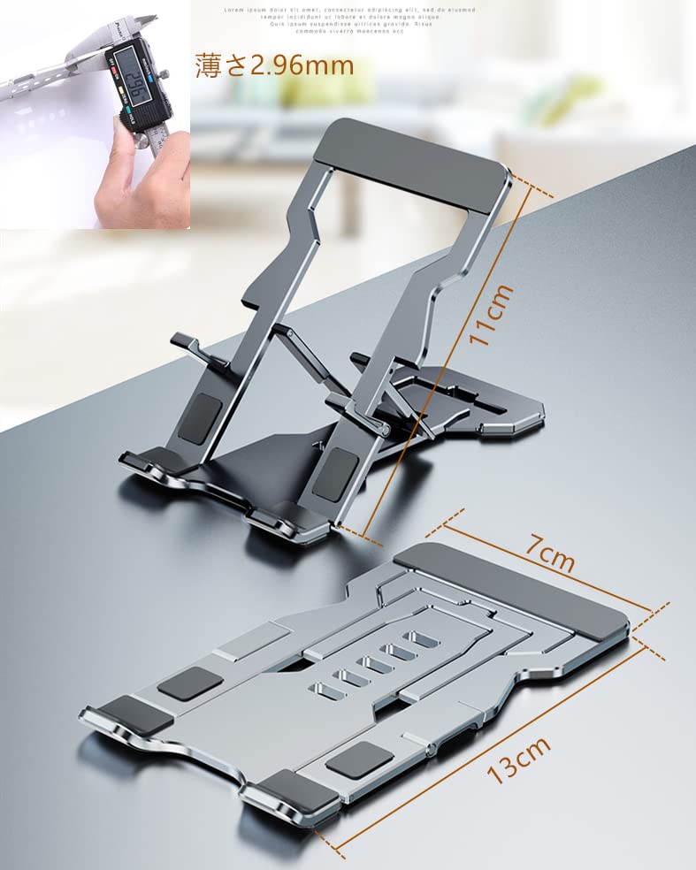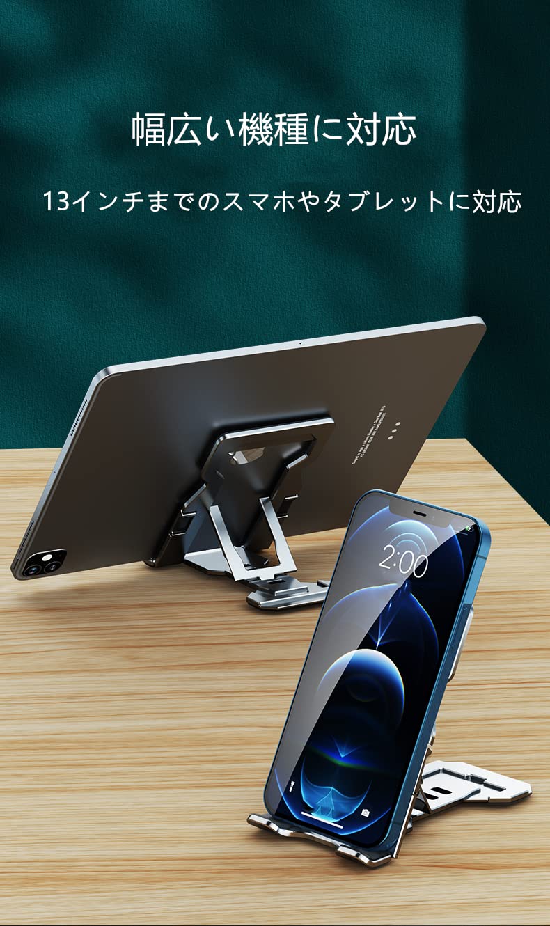 スマホ スタンド アルミニウム製 超薄型 高度調整可能 携帯スタンド コンパクト 折り畳み式 軽量