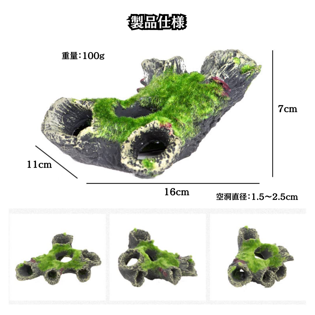 Charmoon 水槽 オブジェ 流木 苔 緑 隠れ家 シェルター リアル 置物 アクアリウム オーナメント (タイプ1)