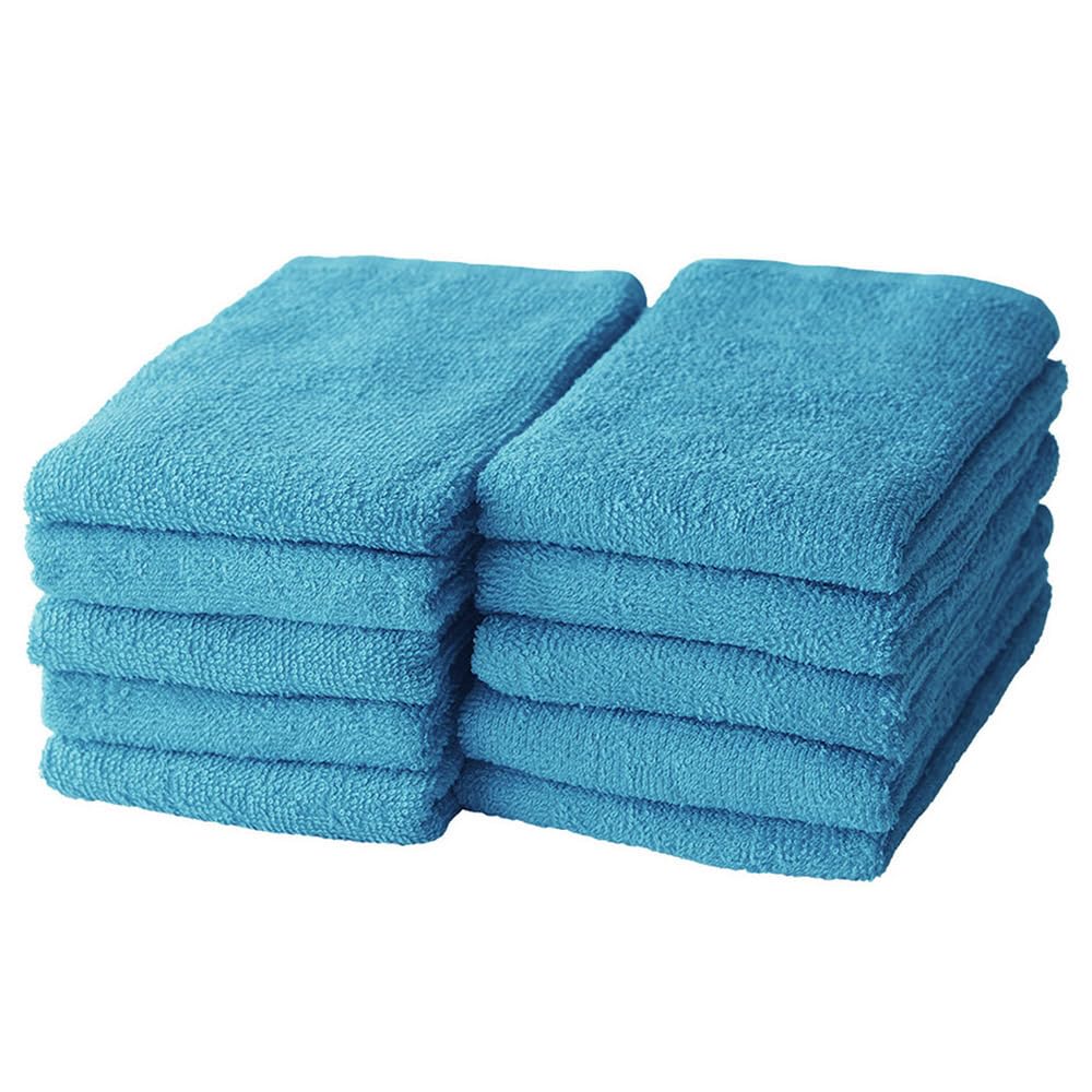 GamachaTowel 全22色 フェイスタオル【 ピーコック 10枚セット 】 キッチンや洗面所の手拭きに 使い勝手の良い薄手タオル 綿100% 肌に優しく吸水速乾 普通サイズ