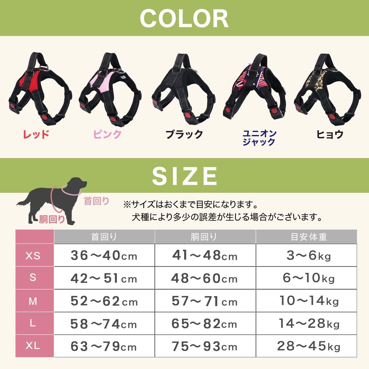 カラー(ブラック・レッド・ユニオンジャック・ピンク・豹) サイズ(XS・S・M・L・XL)チワワ トイプードル 柴犬 フレンチブルドッグ ポメラニアン ダックス ヨーキー パグ シーズーなど小型犬、中型犬などや大型犬までおすすめです。