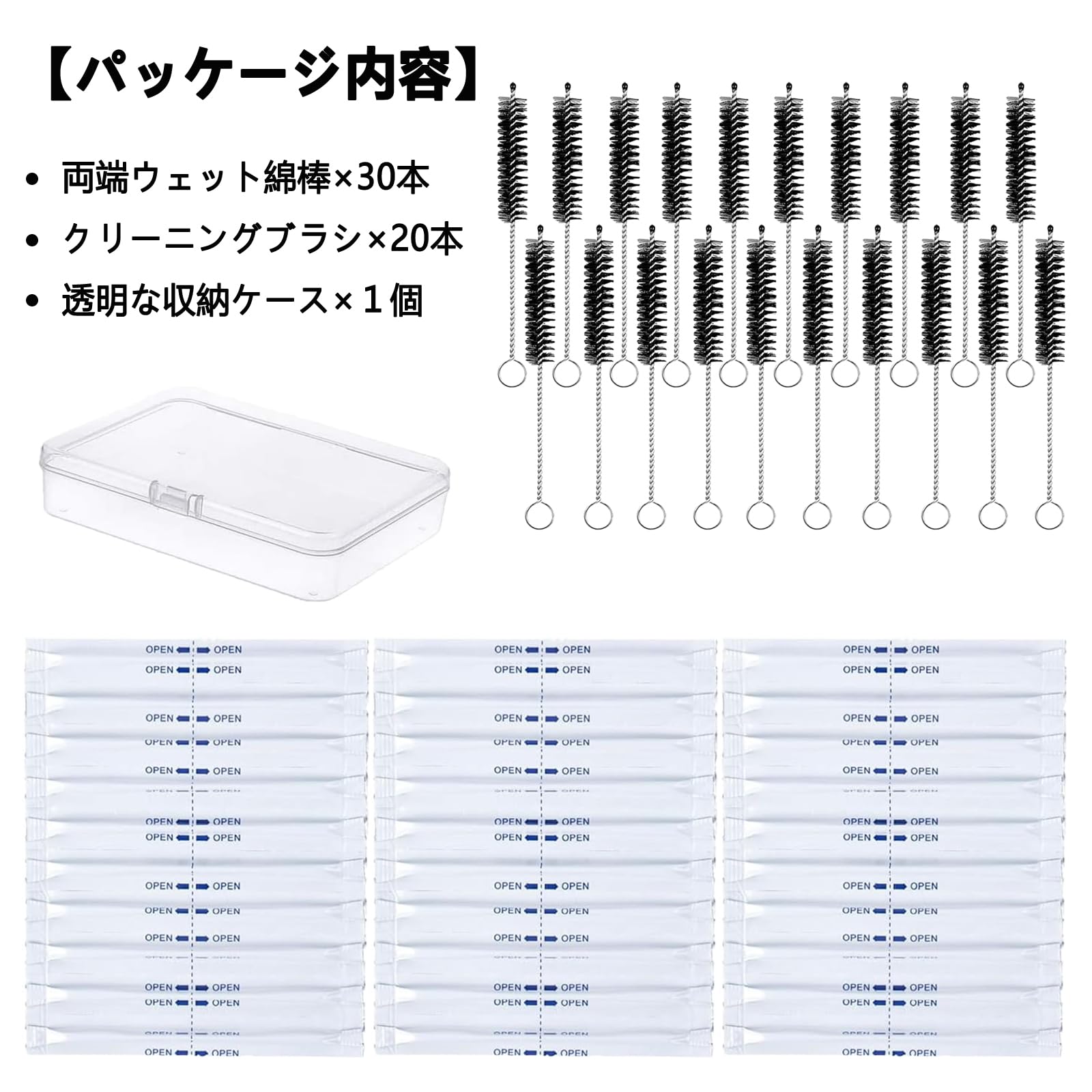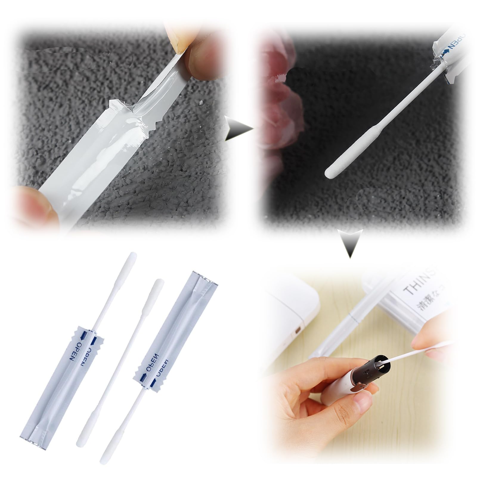 【個別包装】クリーニングスティックを一本ずつ個別に密封パックし、綿部の洗浄液が乾燥する心配はなくなり、旅行や出張などの持ち運びに便利です。綿棒が曲がりにくいプラスチック素材なので折れず、力を入れやすいし、細かい部分の汚れやゴミなども綺麗に取り除くことができます。