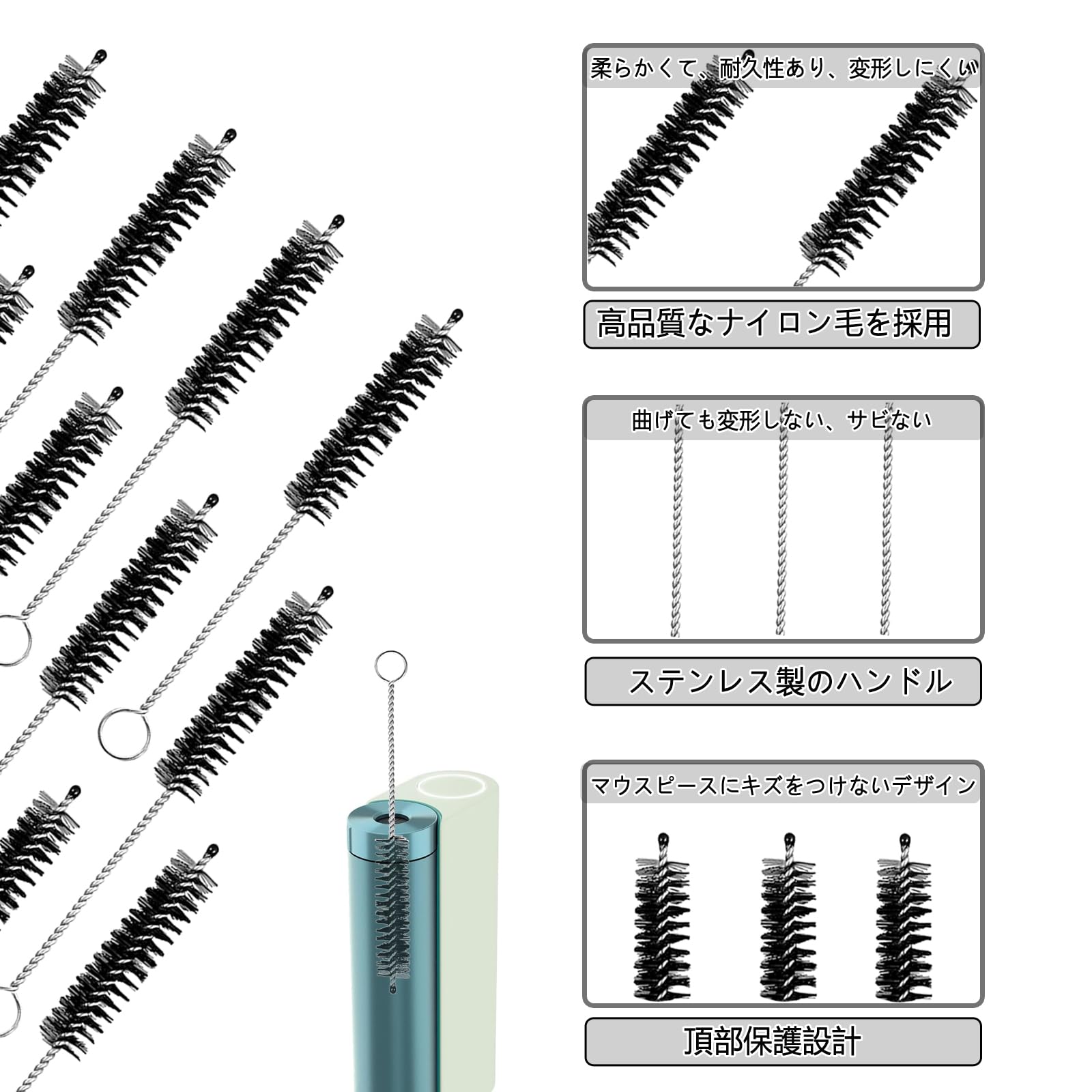 【優れた素材】グロー 掃除用ブラシのスティックが奥まで掃除ができるので、しっかり掃除ブラシの役目を果たしています。クリーニングブラシはステンレス製の持ち手は洗浄可能で、防錆性のある素材で作られています。水で洗え、繰り返し使用可能。