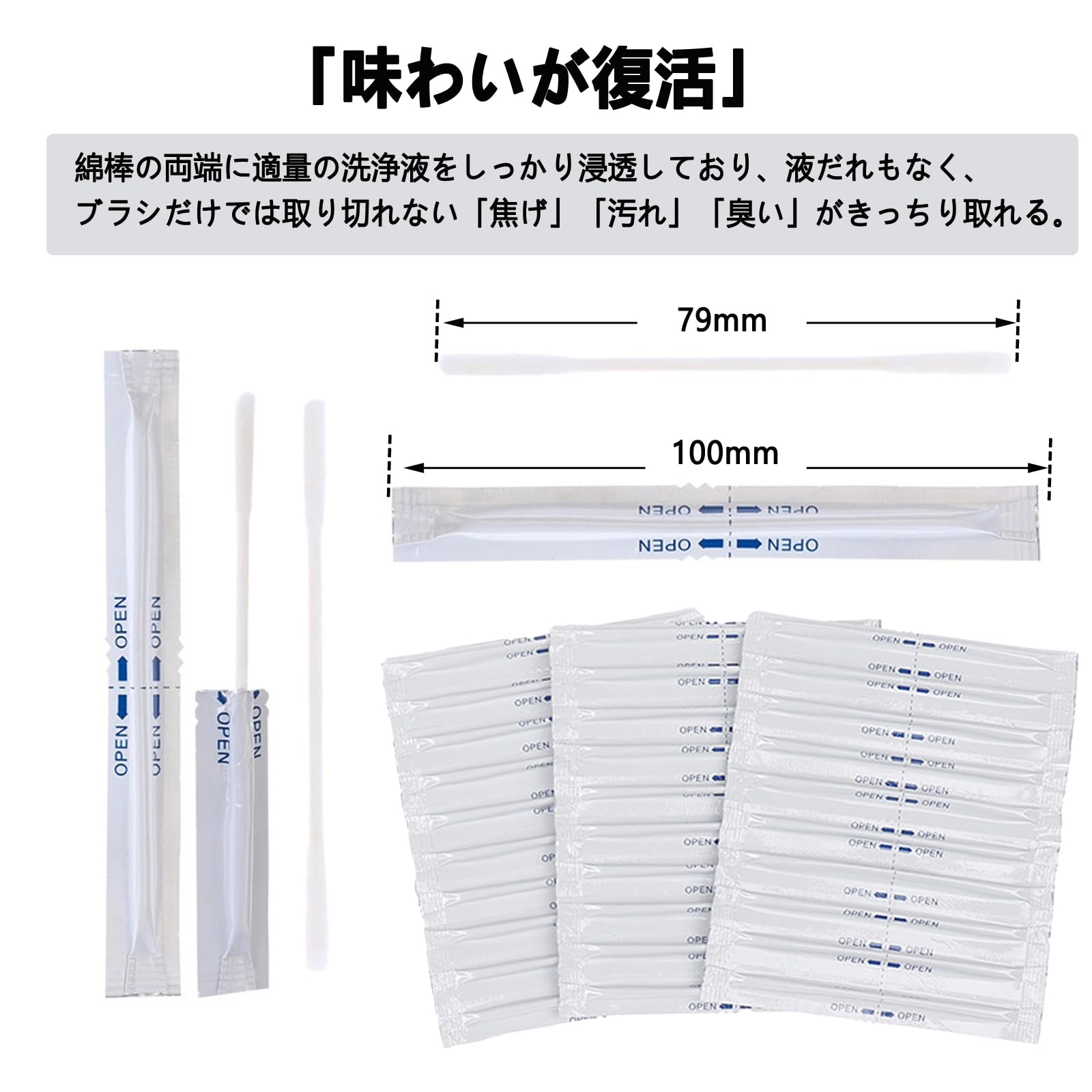 【携帯便利】ブラシで初めて掃除し、綿棒を利用してラシだけでは取り切れない「焦げ」「汚れ」「臭い」がきっちり除去できます。透明なPP素材製の収納ケースが付いており、整理整頓された保管が可能です。旅行や出張などの持ち運びに便利です。
