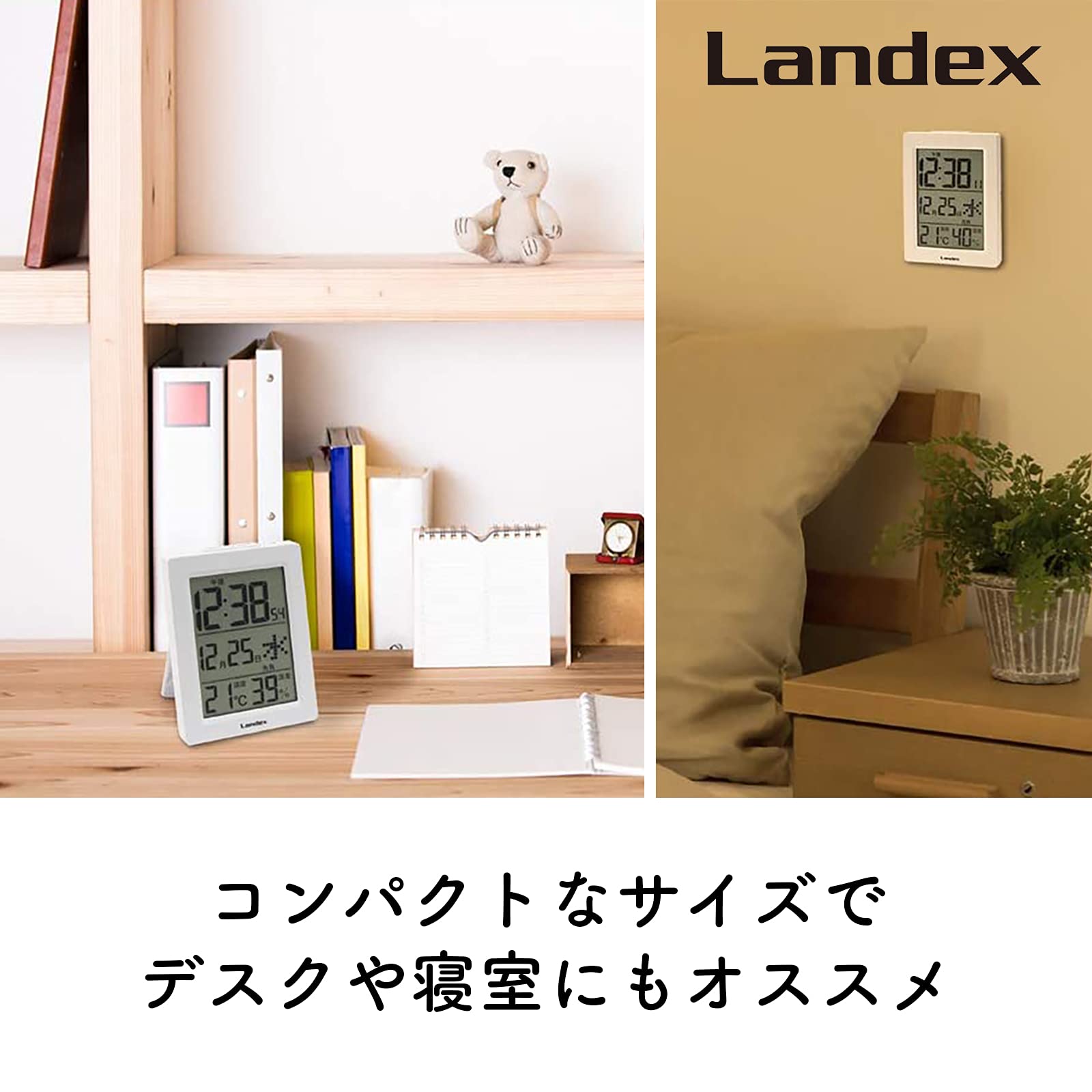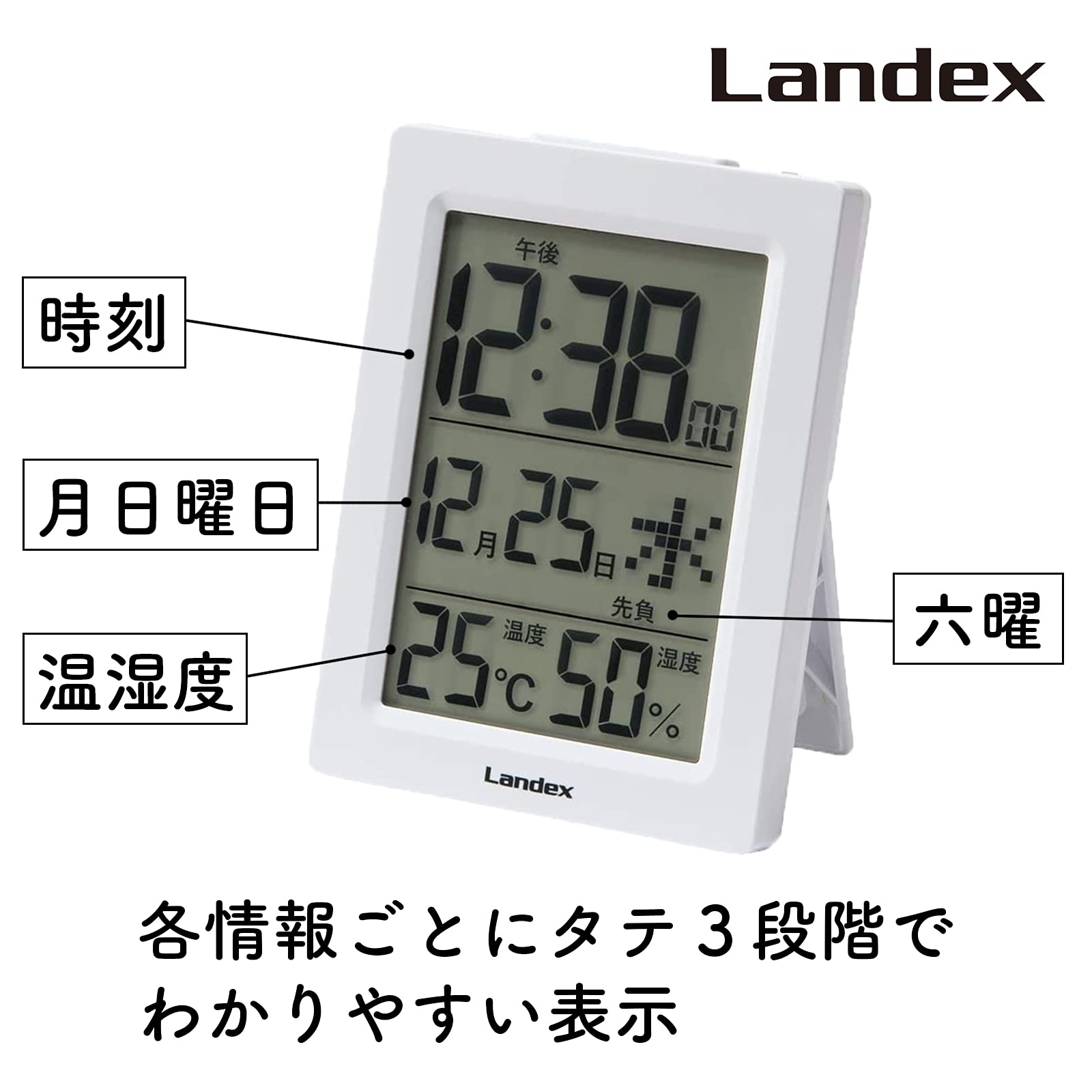 ランデックス(Landex) 目覚まし時計 白 デジタル スリムデジット 自動点灯 六曜 温度 湿度 カレンダー 表示 置き掛け兼用 YT5285WH