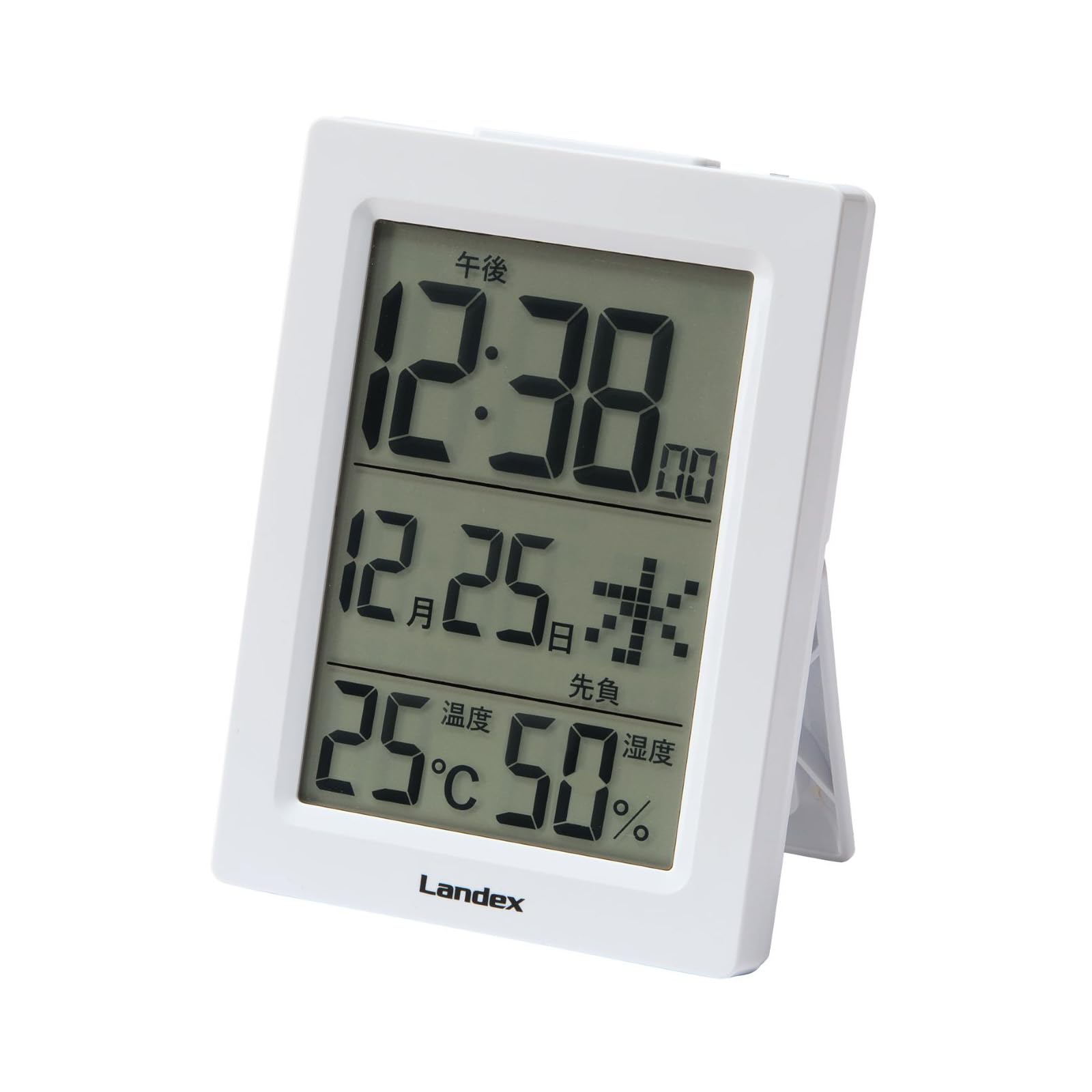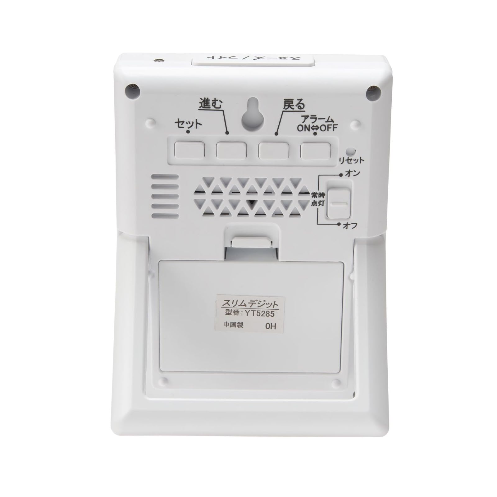 【在庫処分】ランデックス(Landex) 目覚まし時計 白 デジタル スリムデジット 自動点灯 六曜 温度 湿度 カレンダー 表示 置き掛け兼用 YT5285WH