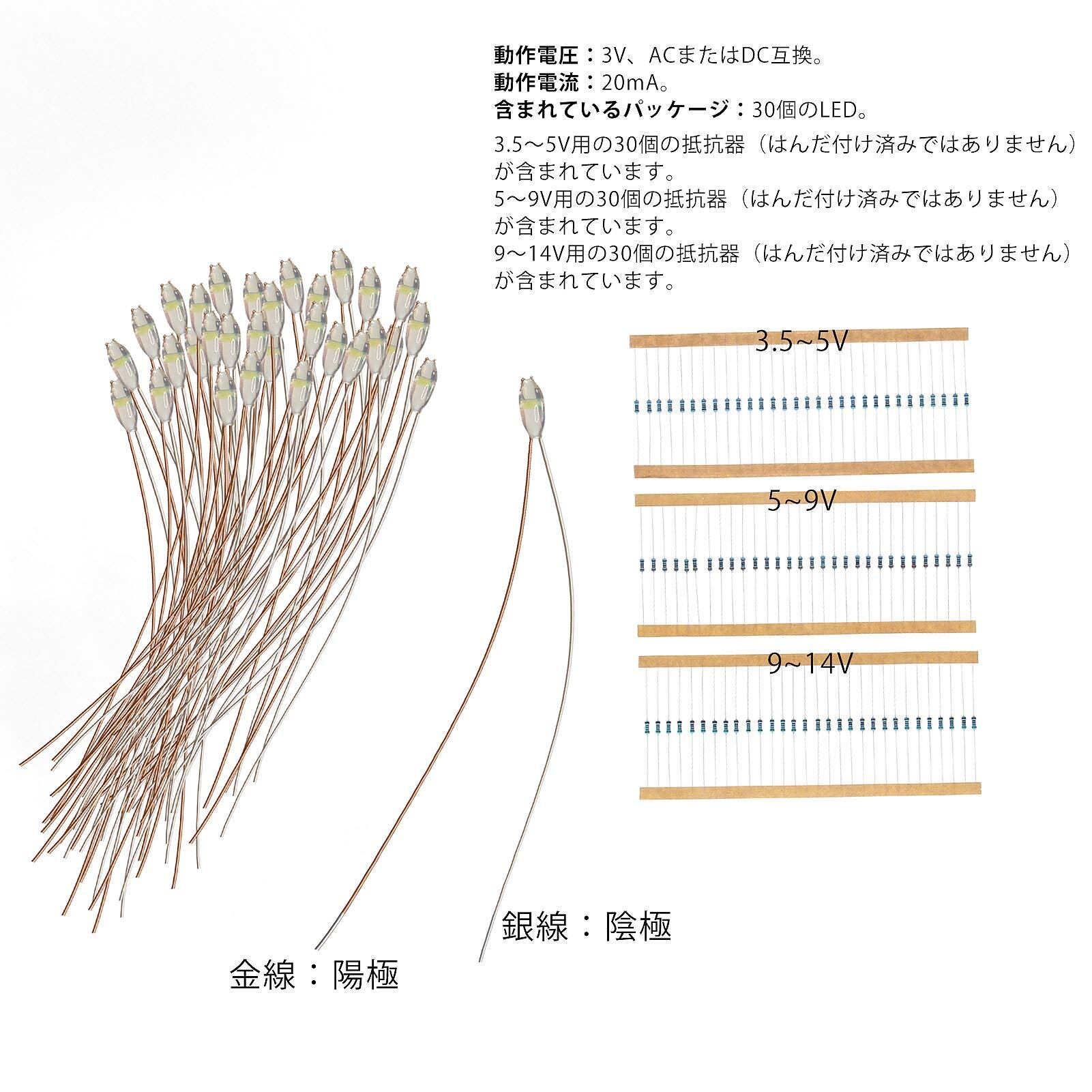 Eve model 30本入配線付き SMD 0603 チップLED 白色 抵抗付属 電車模型 鉄道模型 建物模型 模型電飾 ジオラマ CD0603W