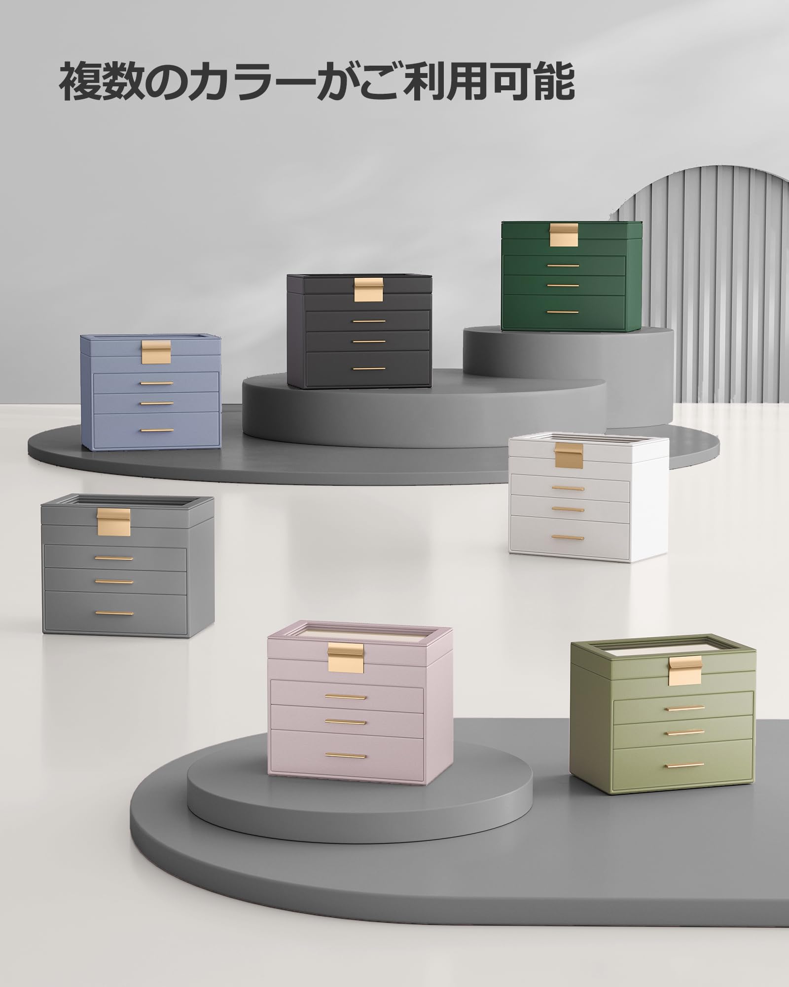 【4層収納】このジュエリーボックスには、小さなジュエリーは上部の3つの層のさまざまなスロットに収納され、サングラスや腕時計は大きな下の引き出しに収納されます。引き出しタイプで、ネックレス、ピアス、指輪などに合わせた専用スペースもありますので、必要なアイテムを簡単に取り出したり、しまったりできます。時間がないときでも迅速にアクセサリーを選ぶことができます。