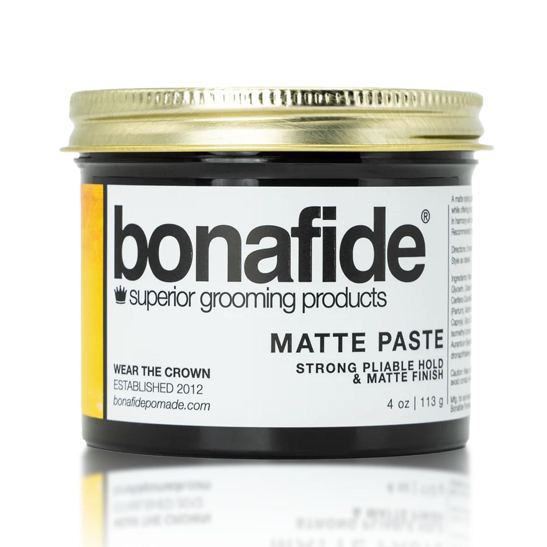 【在庫セール】ボナファイドポマード マットペースト 113g(リニューアル版)|水性 ツヤなし ヘアセット|ハードなキープ力・マット仕上げ|シトラス&ベビーパウダーの香り|メンズ 整髪料 スタイリング剤 Bonafide Pomade ヘアグリース ヘアワックス ヘアジェル