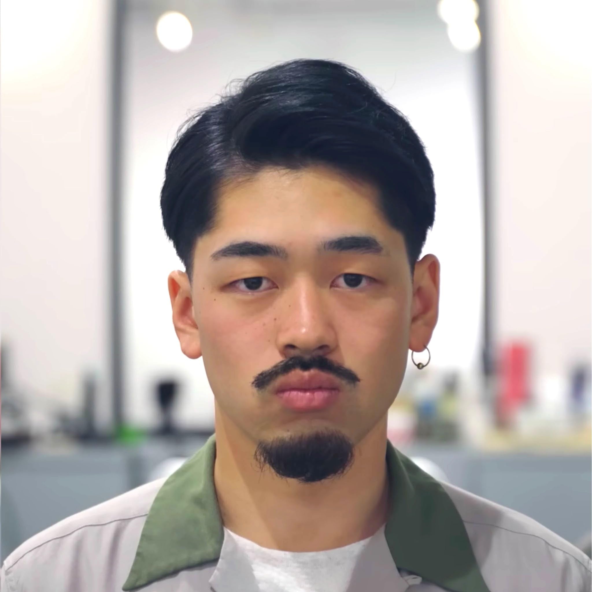 【使い方(簡単5ステップ)】 Step1. 霧吹きなどで髪全体を軽く湿らせる。 Step2. 適量のポマードを手のひらに取り、両手でしっかりなじませる。 Step3. 髪の根元から全体にムラなくなじませ、白色が消えるまで均等に広げる。 Step4. タイトなスタイルにする場合は、クシを使用して整える。 Step5. 仕上げにドライヤーでブローして完成。