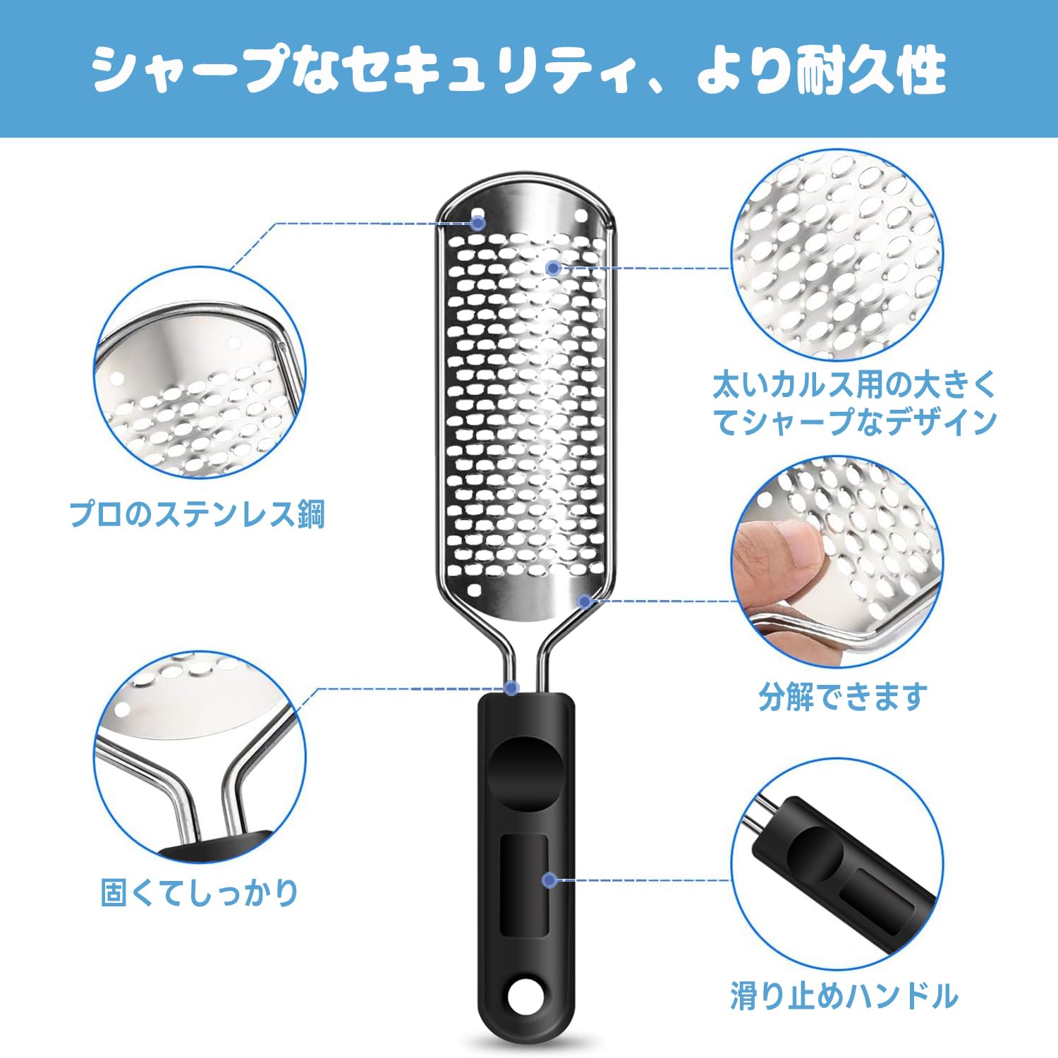 ASXMYAQフットファイル 角質リムーバー かかと 角質取り 角質除去足 フットファイル 角質リムーバー 削り フットケア プロ用ステンレススチール足ヤスリ 安全で効率的な 魚の目削り 足 かかと削り乾湿足用 (ブラック)