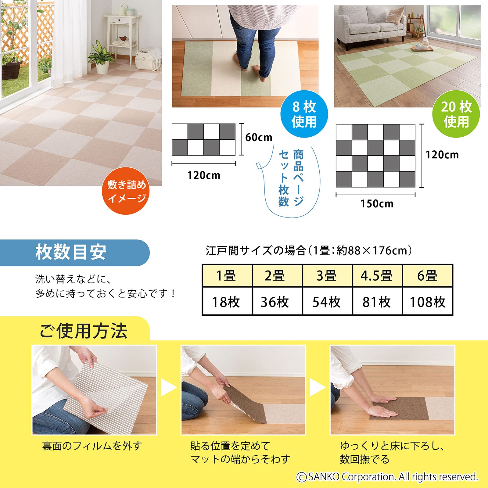 床面のホコリ等を拭き取ってから、商品の裏面のフィルムを剥がしてご使用ください。