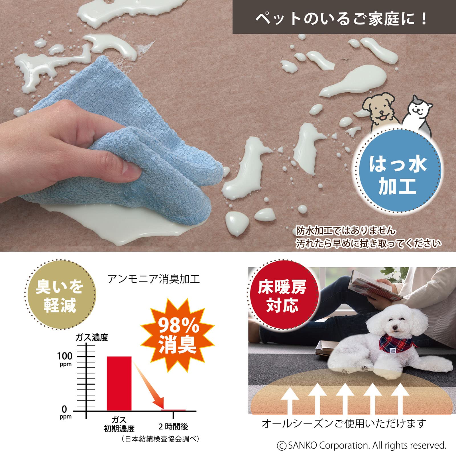 【敷く場所は自由自在】 リビング、ダイニング、キッチン、ペットマット、廊下、玄関などいろんな場所で使用可能