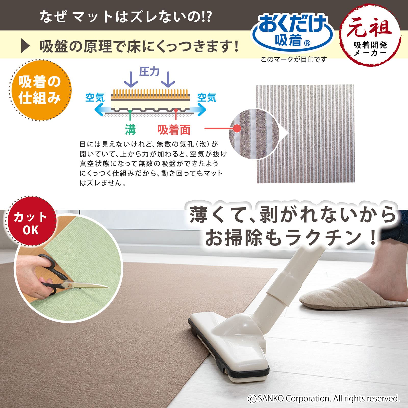 【おくだけ吸着】 床に置くだけでズレない特殊加工
