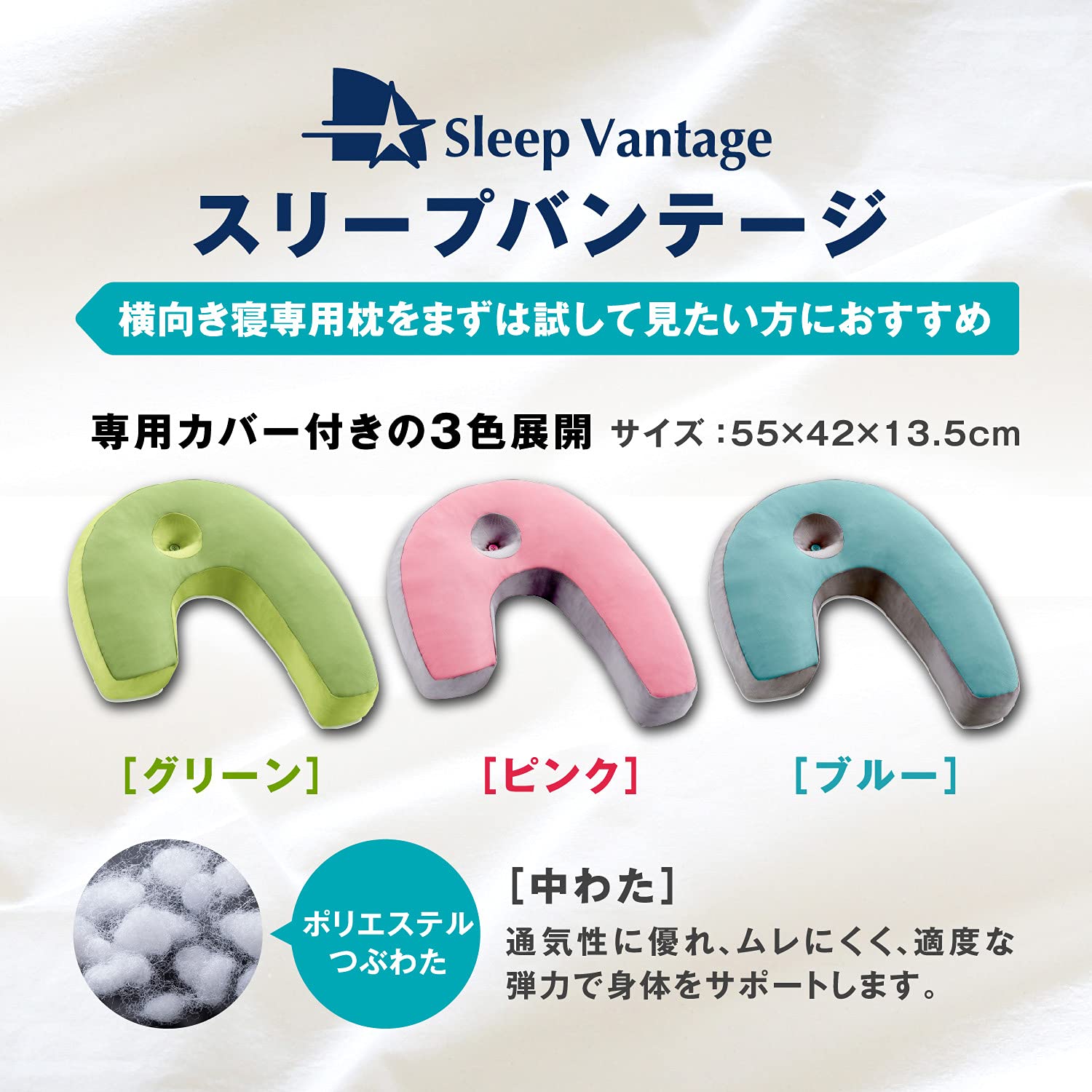 安眠のための横向き寝用まくら。頭・首・肩・背中をしっかりサポートする横向き寝用まくら「スリープバンテージ」。快適な寝姿勢を得られる「横向き寝」を促進する枕です。