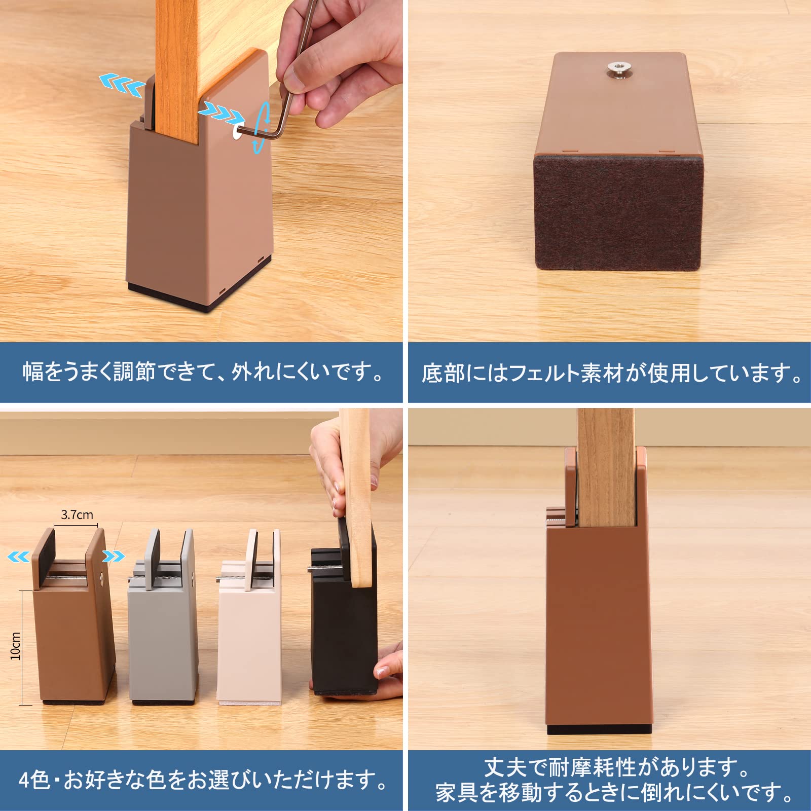 【特価セール】Ezprotekt 高さ調整 継ぎ脚 ベッド・テーブルの高さ調節 テーブル 脚 継ぎ足 こたつ 継足し テーブル脚台 100mm高さを上げる 4個セット 幅を調節できる・0mm~37mm (ブラウン)