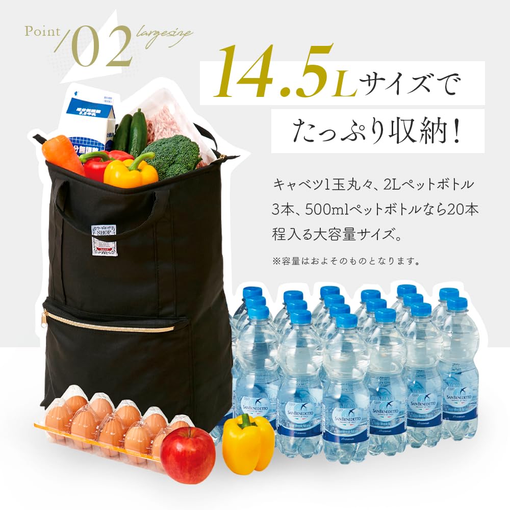 【大容量の収納力】ペットボトルが(2L)が3本も入る収納力! 食品をたっぷり収納できるので、毎日のお買い物の強い味方。スーパーまとめ買いや運動会やピクニックのお弁当も楽々入ります。