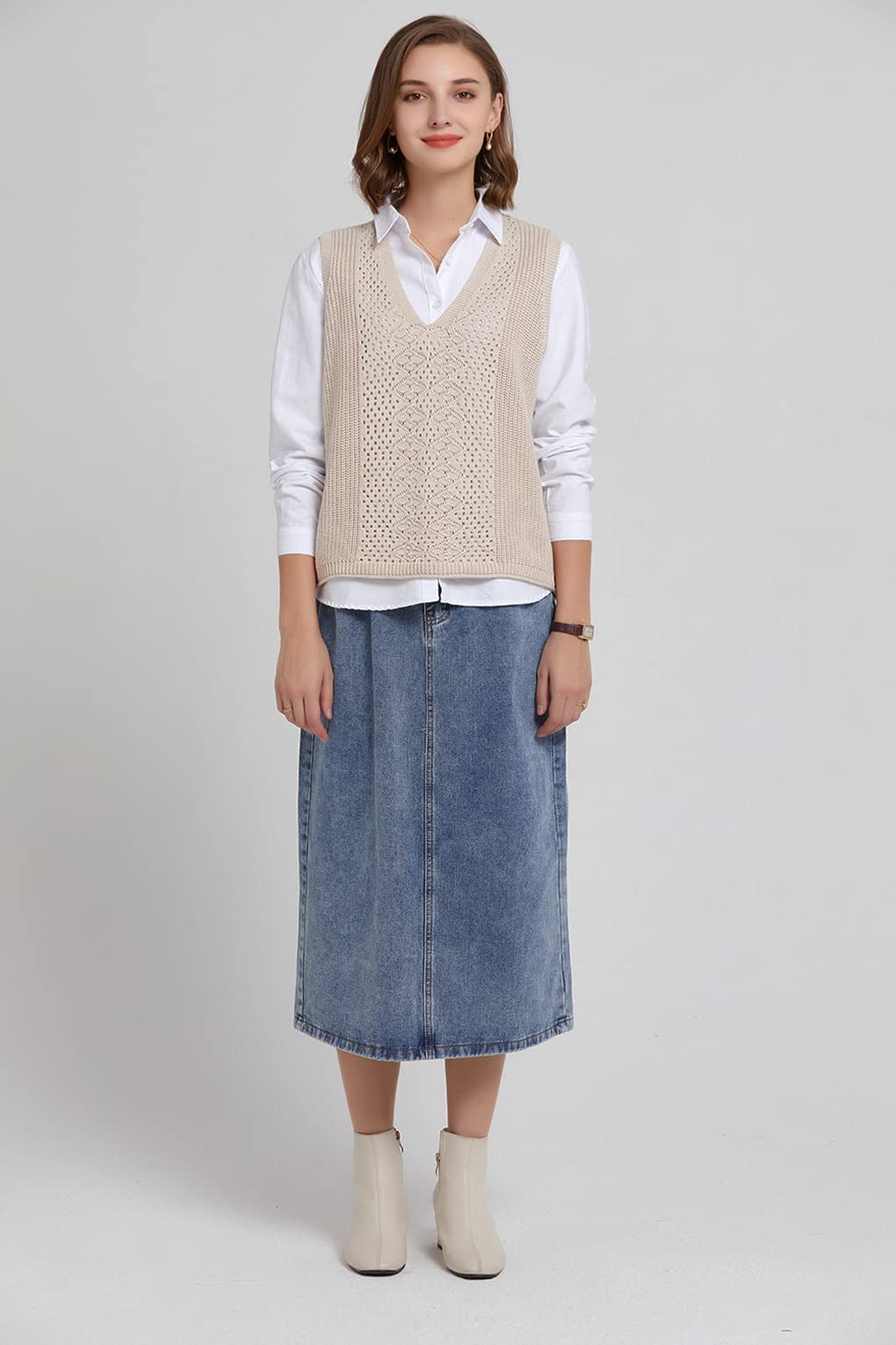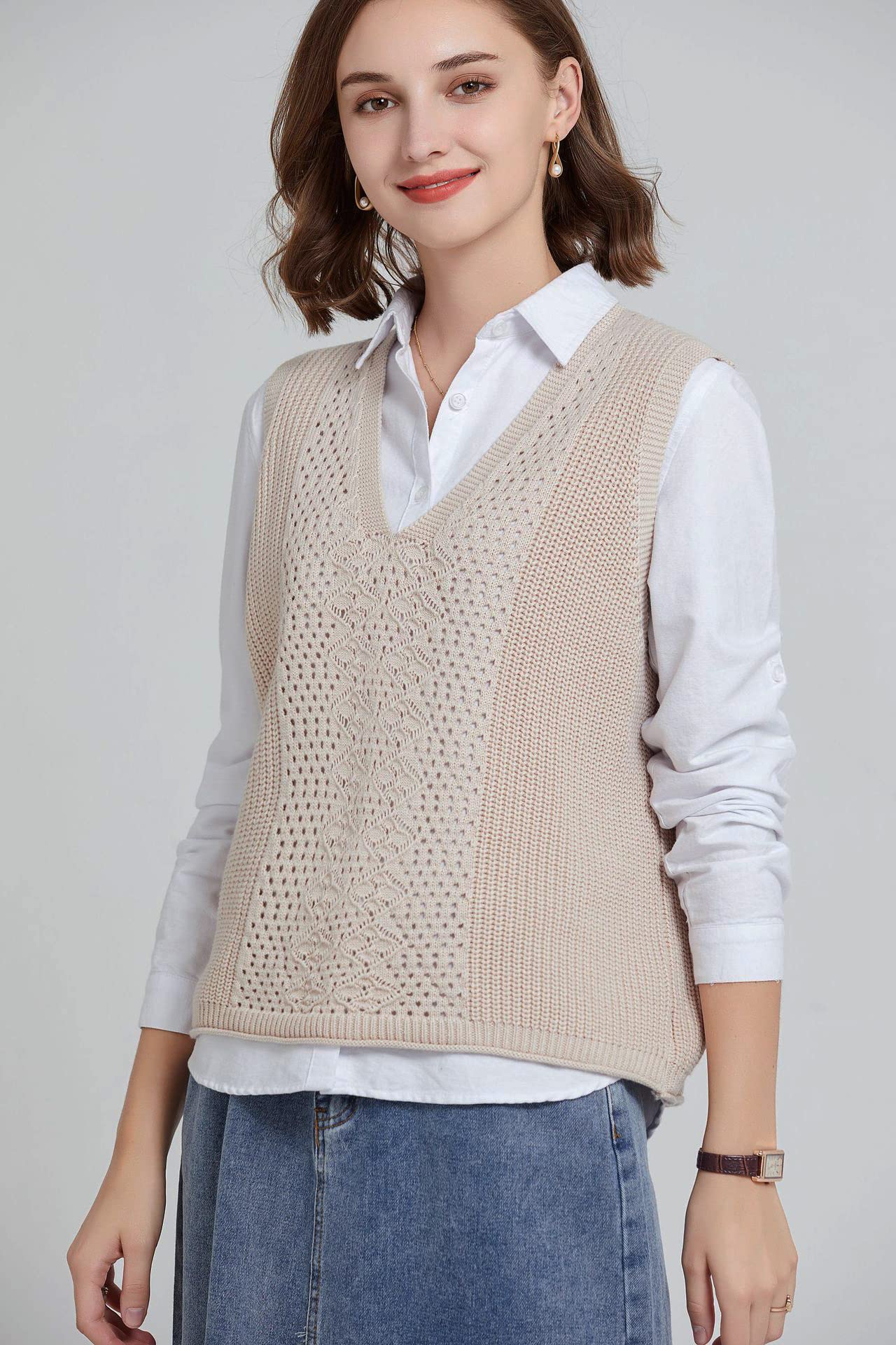 [KOEKOI] ニット ベスト レディース 刺?トップス カジュアル 着?せ 無地 透かし レトロ 編み風 大きいサイズ 重ね着風 ニット セーター おしゃれ 花柄 ベストきれいめ プルオーバー サマー カジュアル 体型カバー
