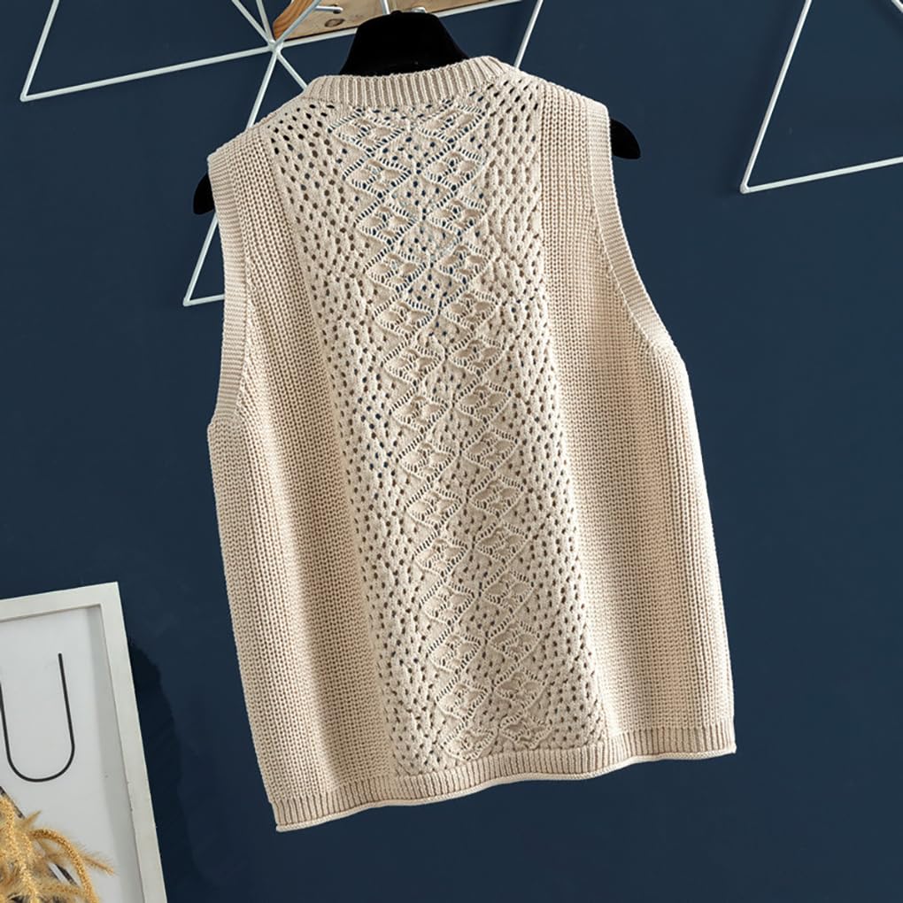 【特価セール】[KOEKOI] ニット ベスト レディース 刺?トップス カジュアル 着?せ 無地 透かし レトロ 編み風 大きいサイズ 重ね着風 ニット セーター おしゃれ 花柄 ベストきれいめ プルオーバー サマー カジュアル 体型カバー