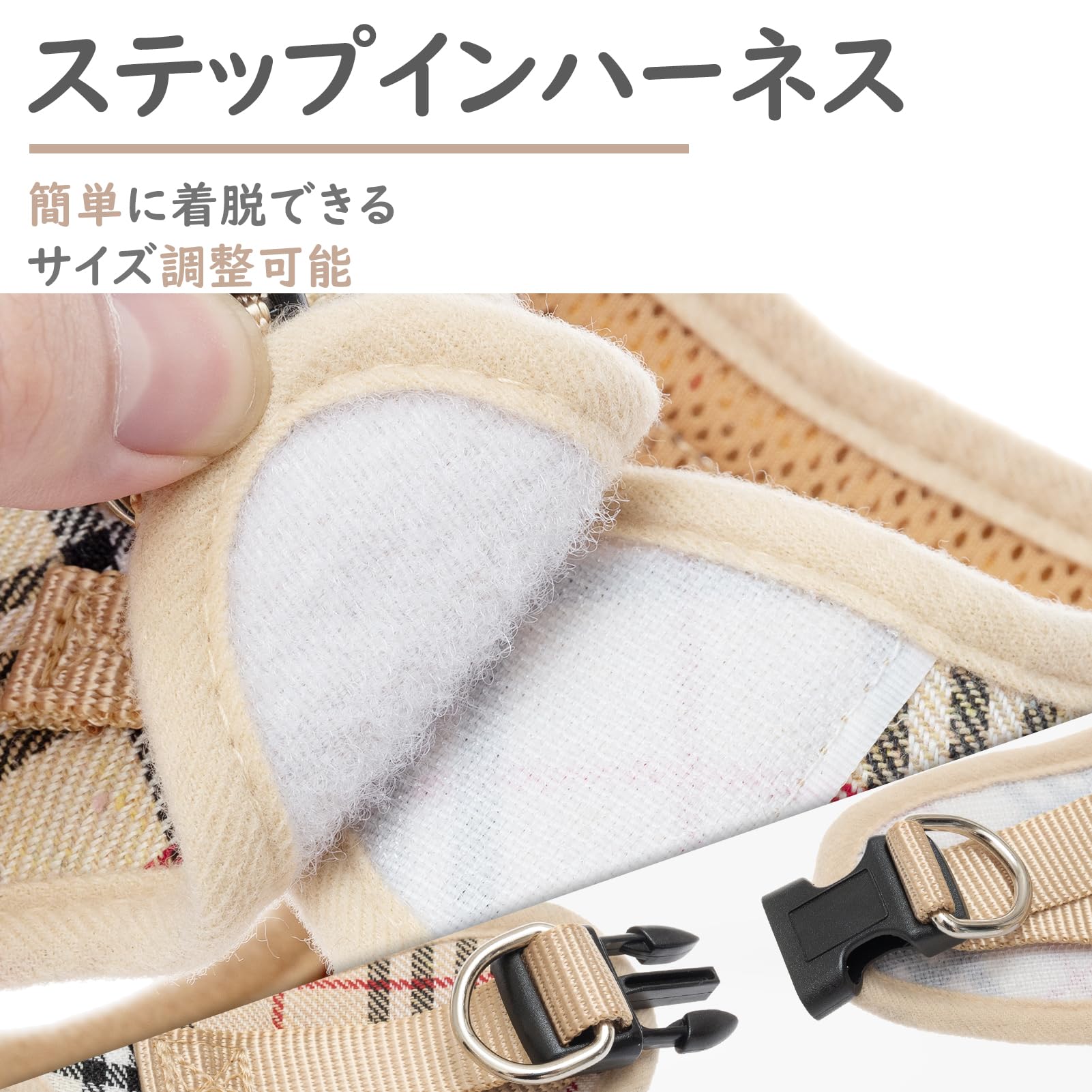 【在庫処分】PUPTECK 犬 ハーネス リード セット 犬用 胴輪 ソフト マジックテープ付き 反射素材付き ペット用品 はーねす 引っ張り防止 抜けない 喉に優しい 調節可能 着脱簡単 軽量 メッシュ 快適 通気 手洗い 耐久性 安全 散歩 しつけ 訓練 老犬介護 人気 可愛い おしゃれ 超小型犬 小型犬 中型犬 大型犬(ベージュ チェック、Sサイズ)
