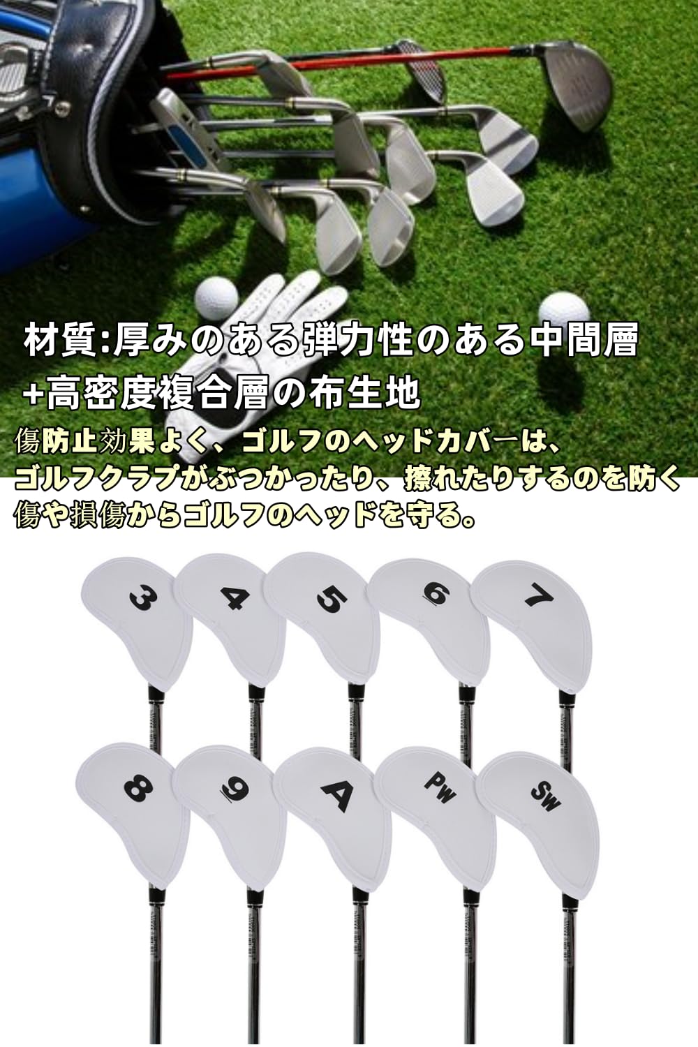 【新着商品】YFFSFDC ゴルフアイアンカバー ヘッドカバー 10枚入り(3?9、A、Pw、Sw)番号 保護カバー