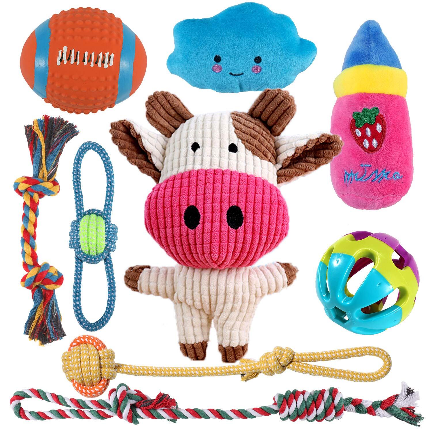【セット内容】4個ロープ型と2個ボール型と3個音の出るコットンのおもちゃを組み合わせて、かわいらしいカラーとデザインなので、飼い主さんも楽しく使えます。小型犬、中型犬に適したサイズです。初期不良対応をします。不良品があれば交換できます。心配なく選択してください。