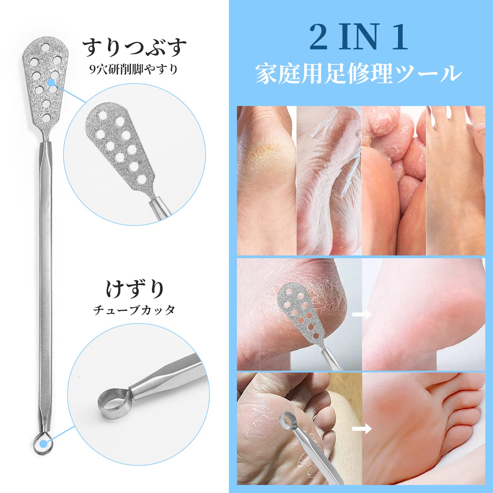 【高品質の素材】プロ仕様ステンレス製なので、堅固で耐久性がある乾燥したカルスおよび硬質の肌層を剃ることができますのかかとやすり。耐水性、耐久性にすぐれたステンレスを採用し、錆になる悩みはありません。水洗い可能なので、浴室でも使えます.自宅で完璧なペディキュア実現できます。